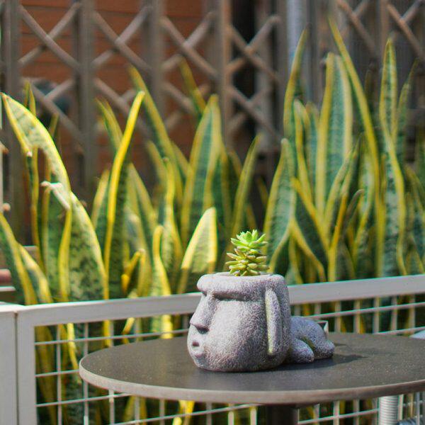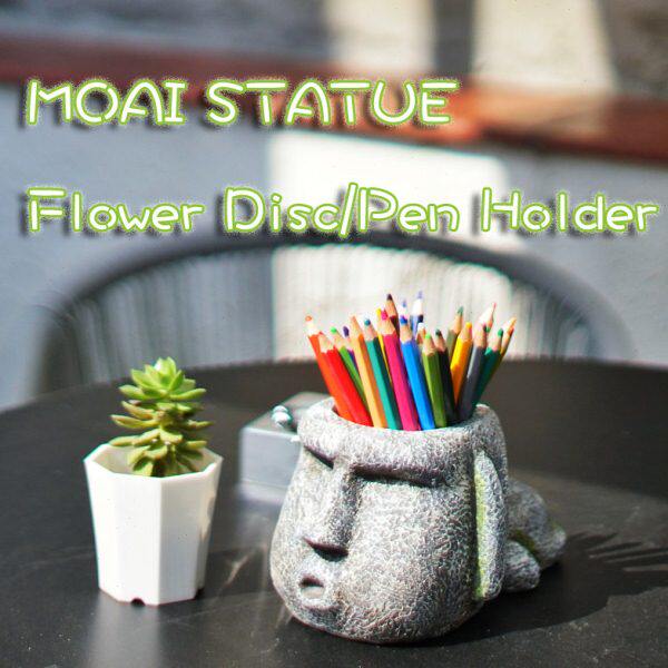 📚 创意摩艾智利复活岛石像人MOAI石人收纳花盘笔筒 种植花盘MO010