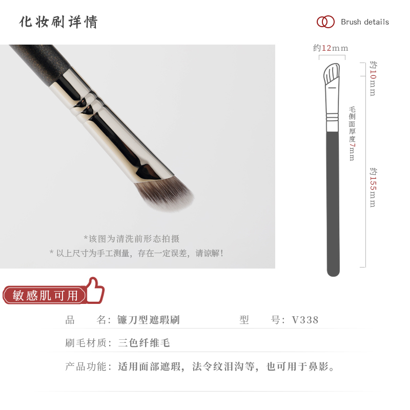 📚 琴制化妆刷V系列V338镰刀形法令纹泪沟遮瑕刷指腹刷鼻影刷眼部刷