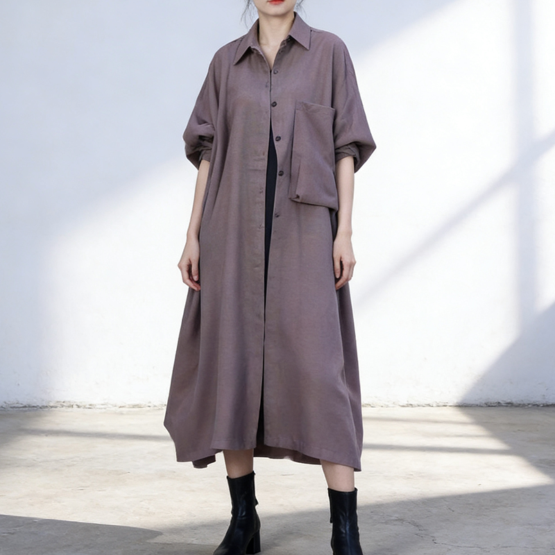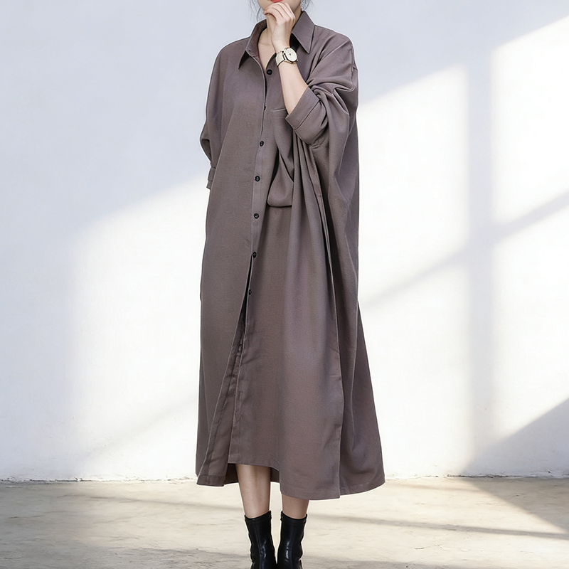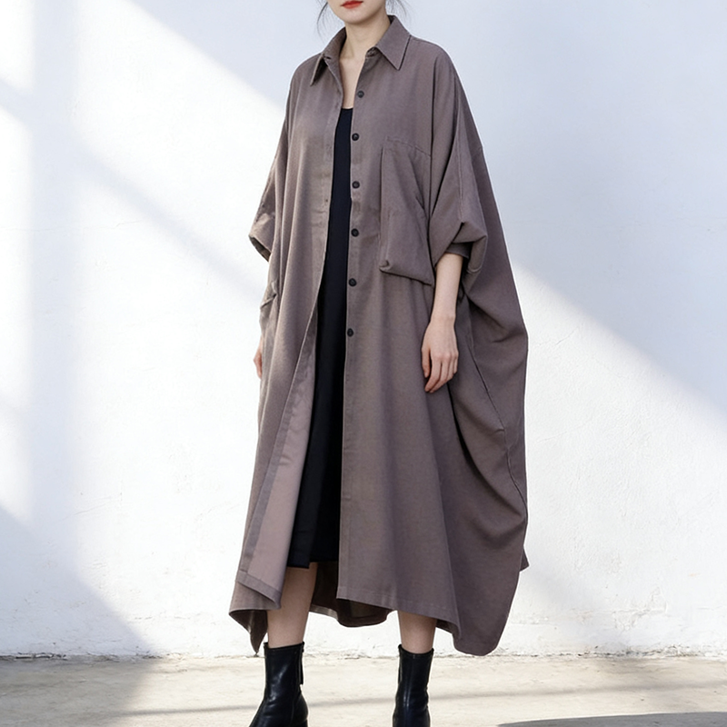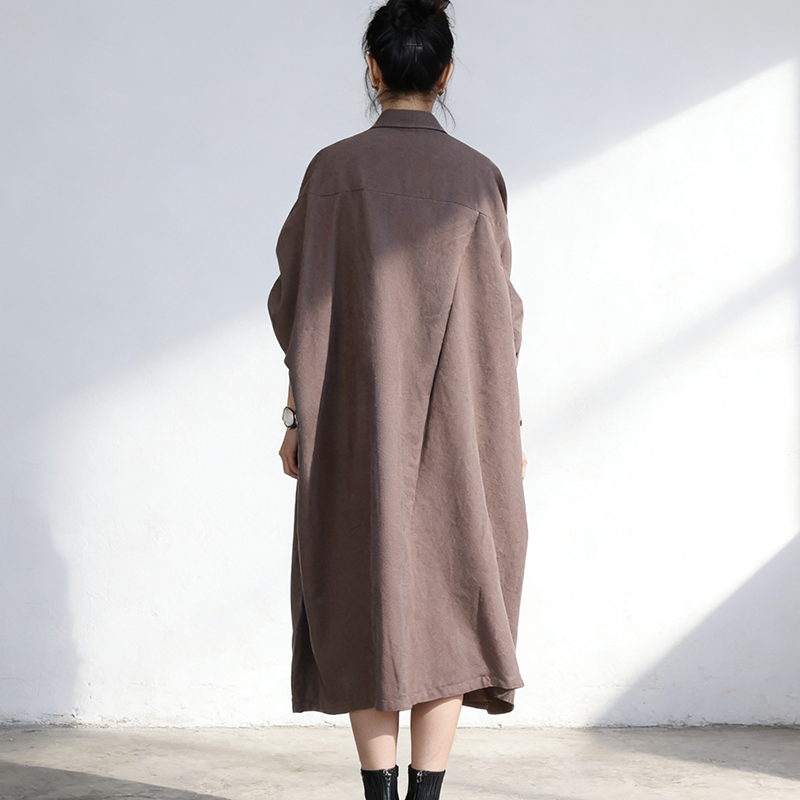 📚 春季文艺风翻领长款风衣女棉宽松大版纽扣开衫外套卡其色大衣