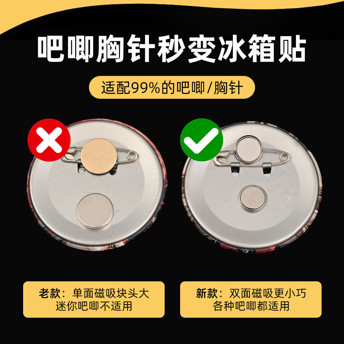 📚 徽章改冰箱贴神转换器吧唧别针胸针强秒变磁吸款金属卡扣固定卡帽