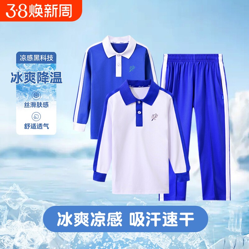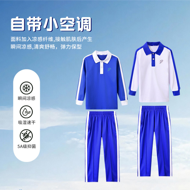 📚 深圳校服小学生春秋季长袖长裤运动服男女套装特版实验蓝白速干