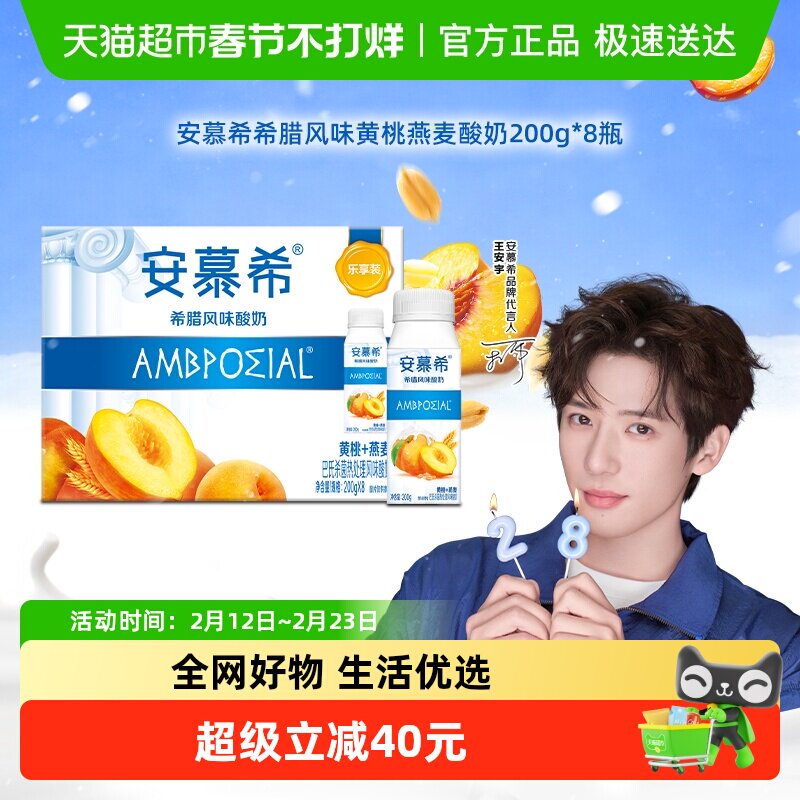 📚 安慕希希腊风味黄桃燕麦酸牛奶200g*8盒装整箱便携装