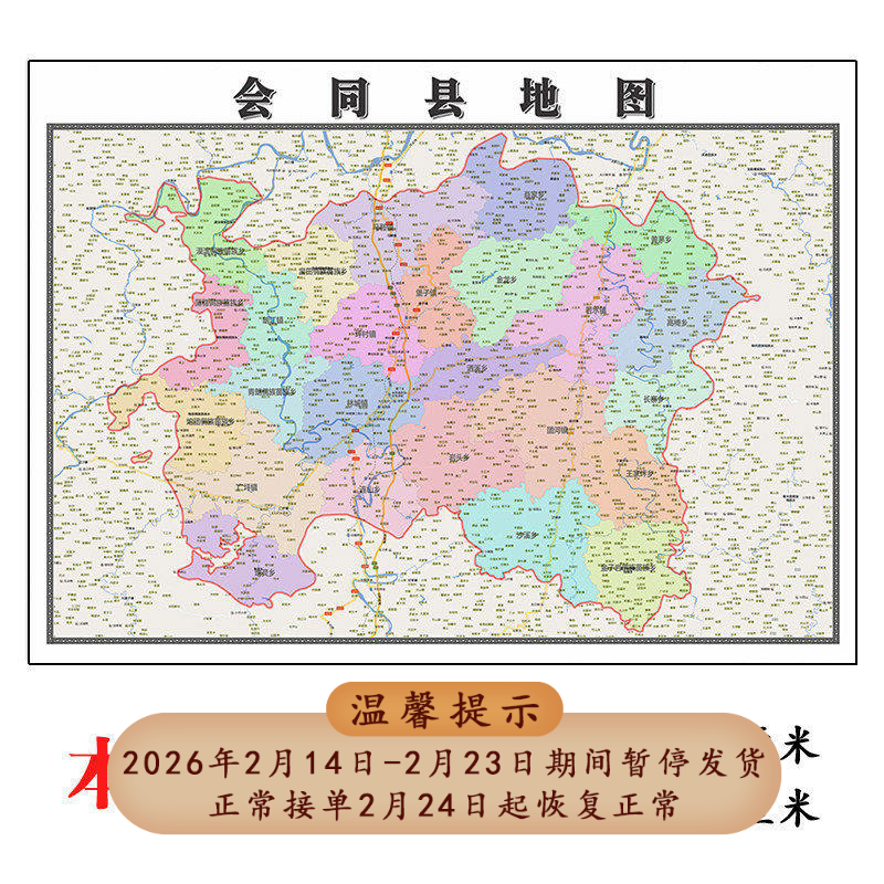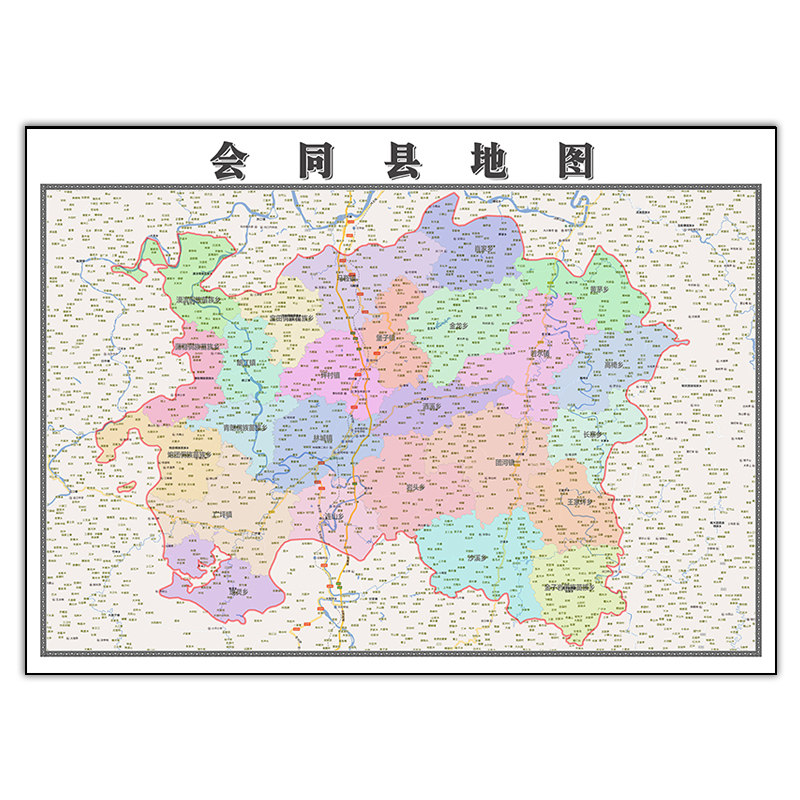 📚 会同县地图1.15m行政交通区域划分新款怀化市折叠版高清装饰墙贴