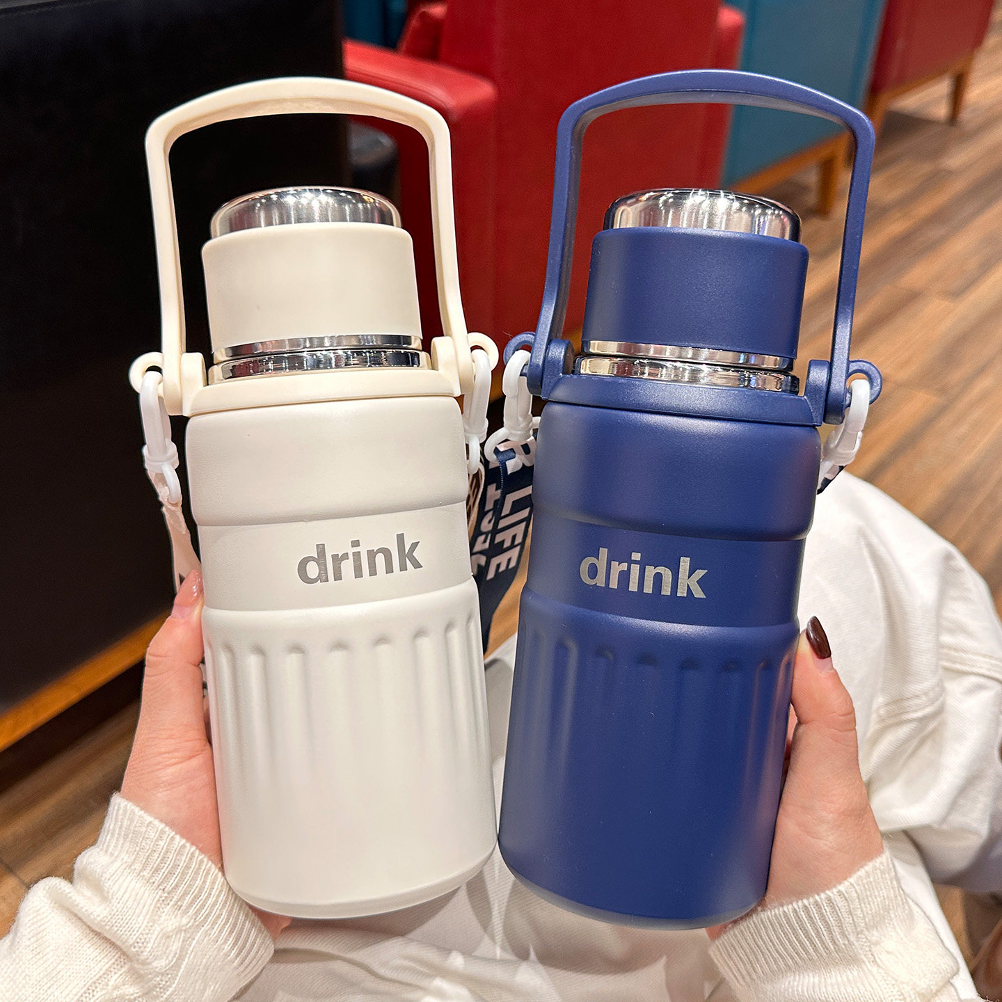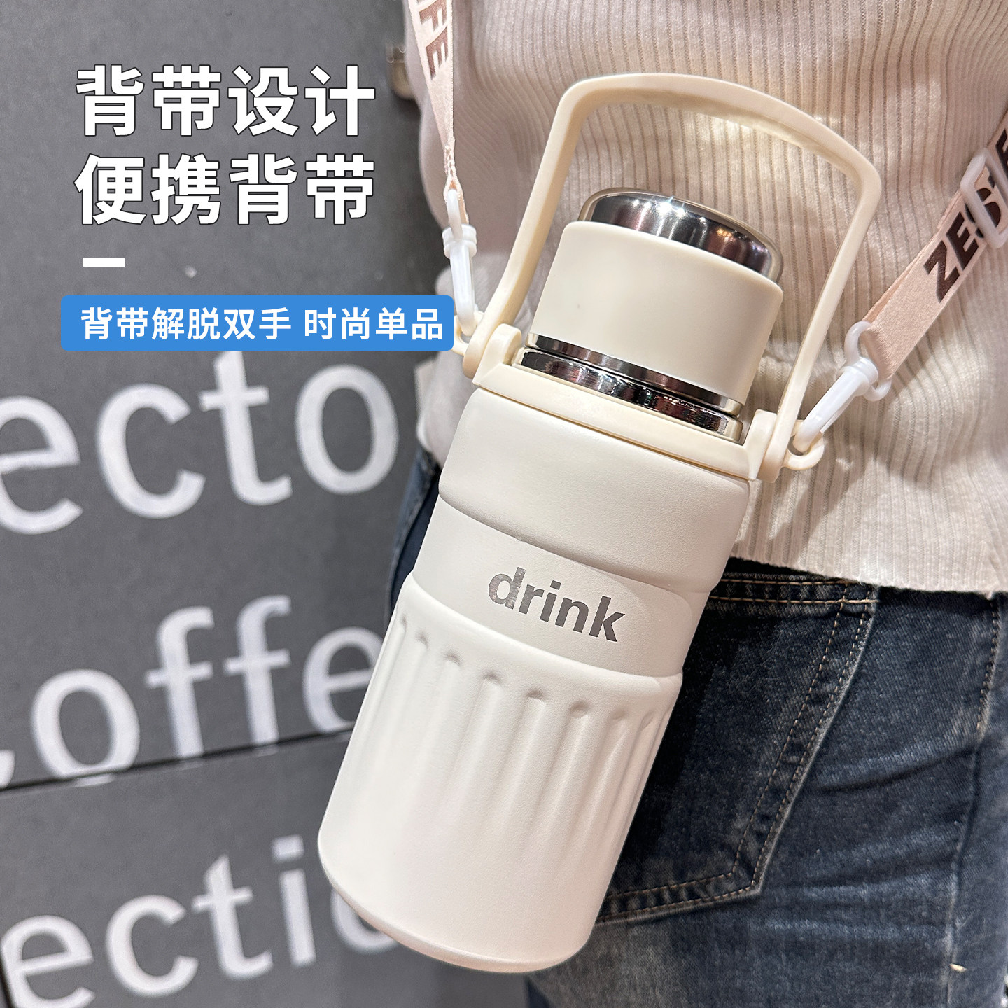 📚 大容量不锈钢保温杯男款简约双饮水杯学生上学专用手提保冷保温壶