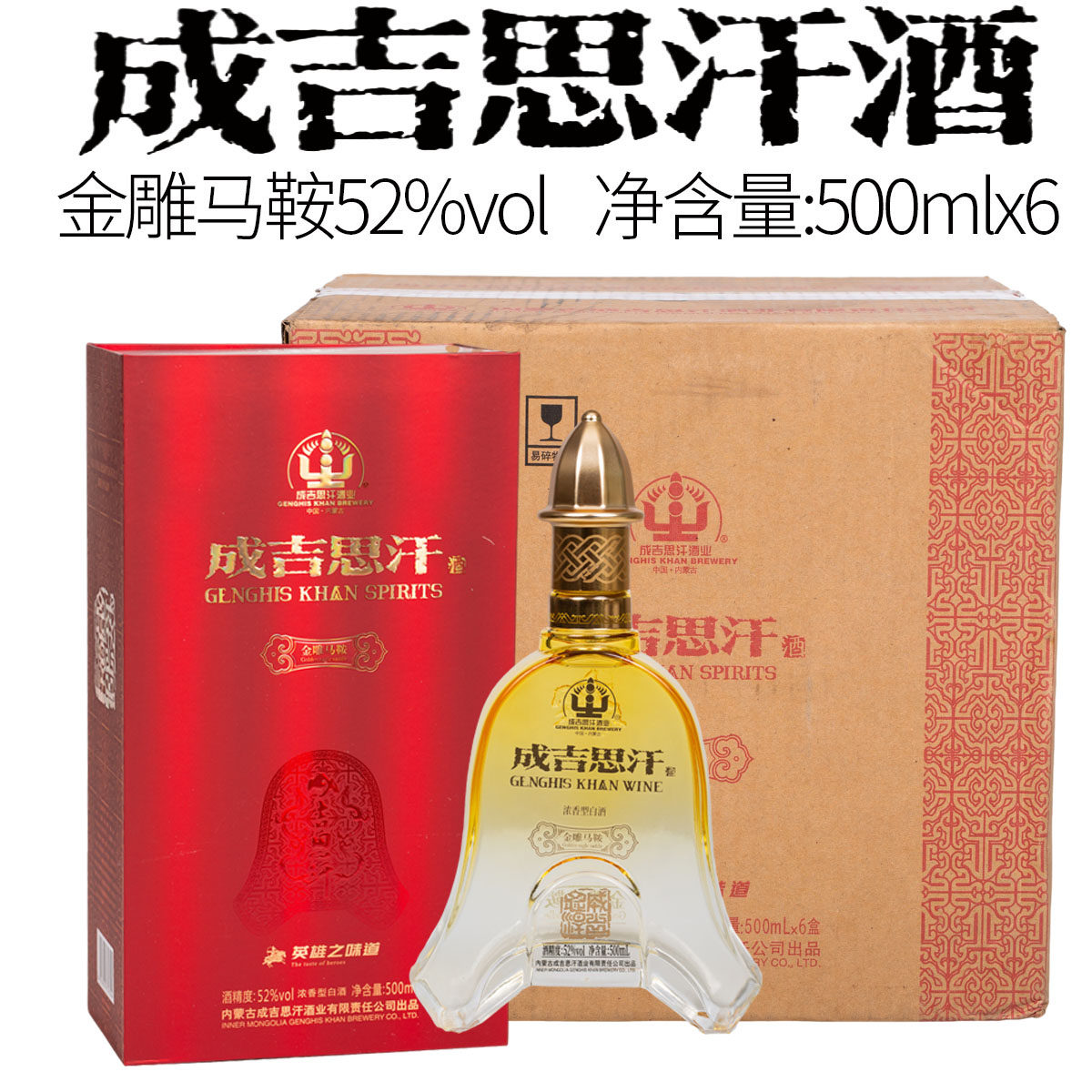📚 内蒙古成吉思汗白酒52°金雕马鞍浓香型白酒整箱6瓶x500ml粮食酒