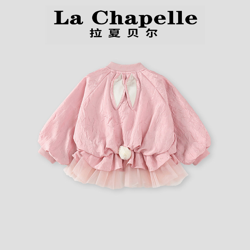📚 拉夏贝尔童装女童春天外套粉色可爱兔子甜美网纱上衣宝宝春装