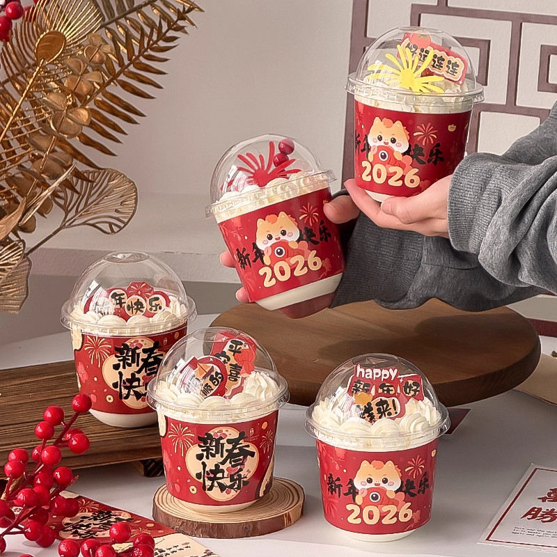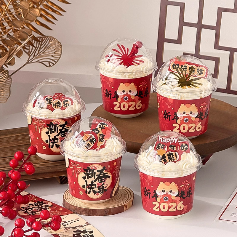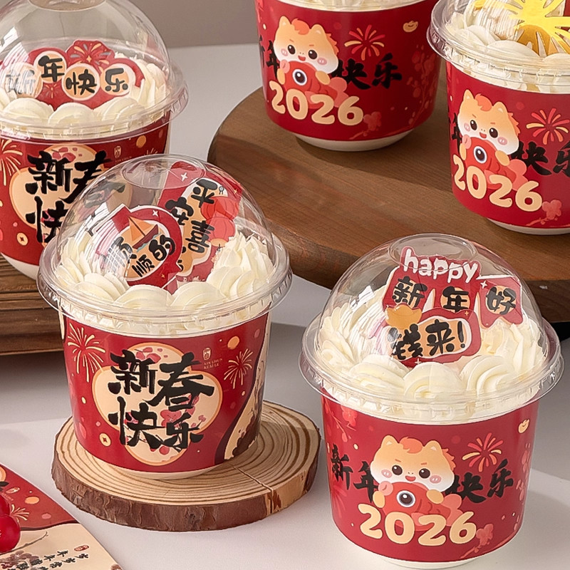📚 新年快乐波波杯2026马年蛋糕装饰围边插件胖胖杯元旦跨年烘焙装扮