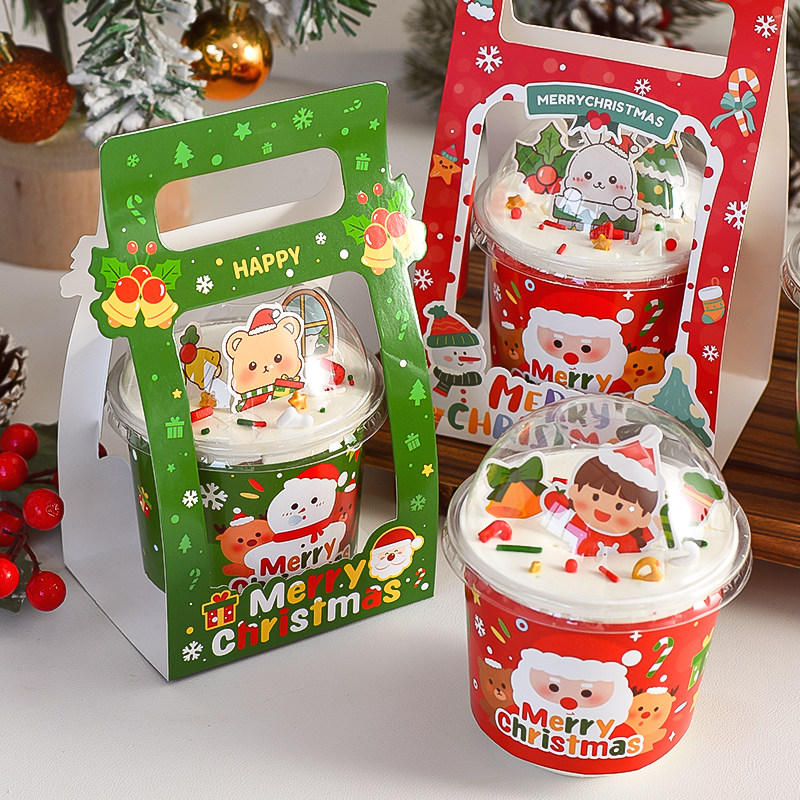 📚 圣诞节蛋糕装饰插件网红圣诞快乐平安夜小熊波波杯围边包装手提盒