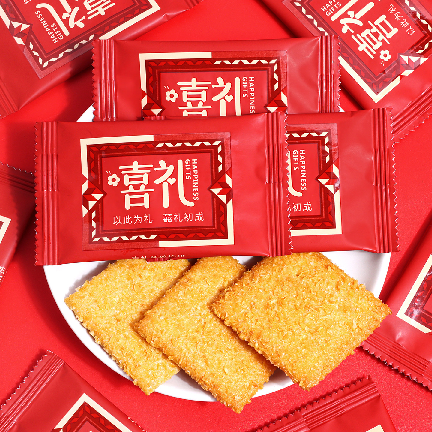 📚 喜礼椰丝松饼订婚喜饼婚礼喜糖批发结婚专用2025年新款散装糖果