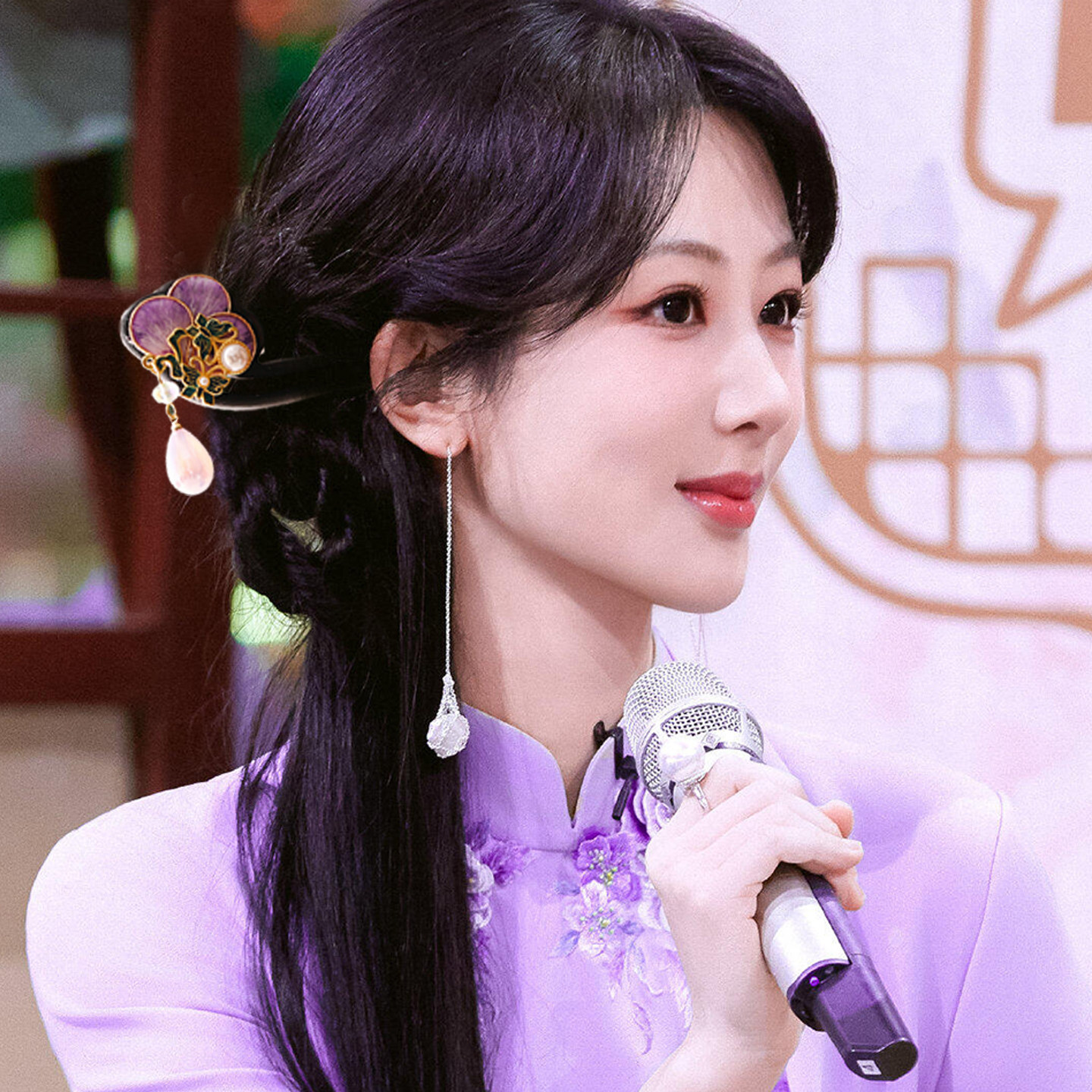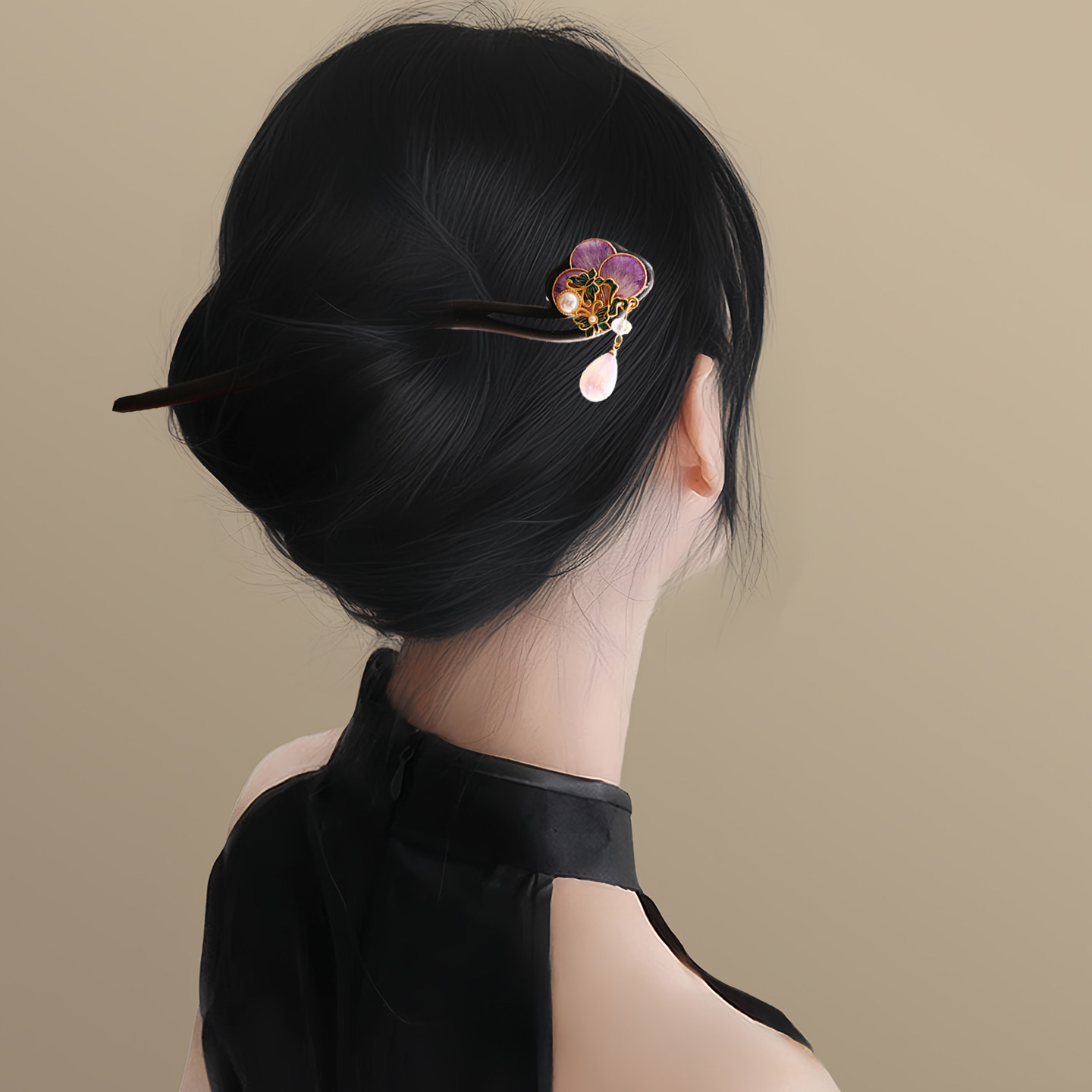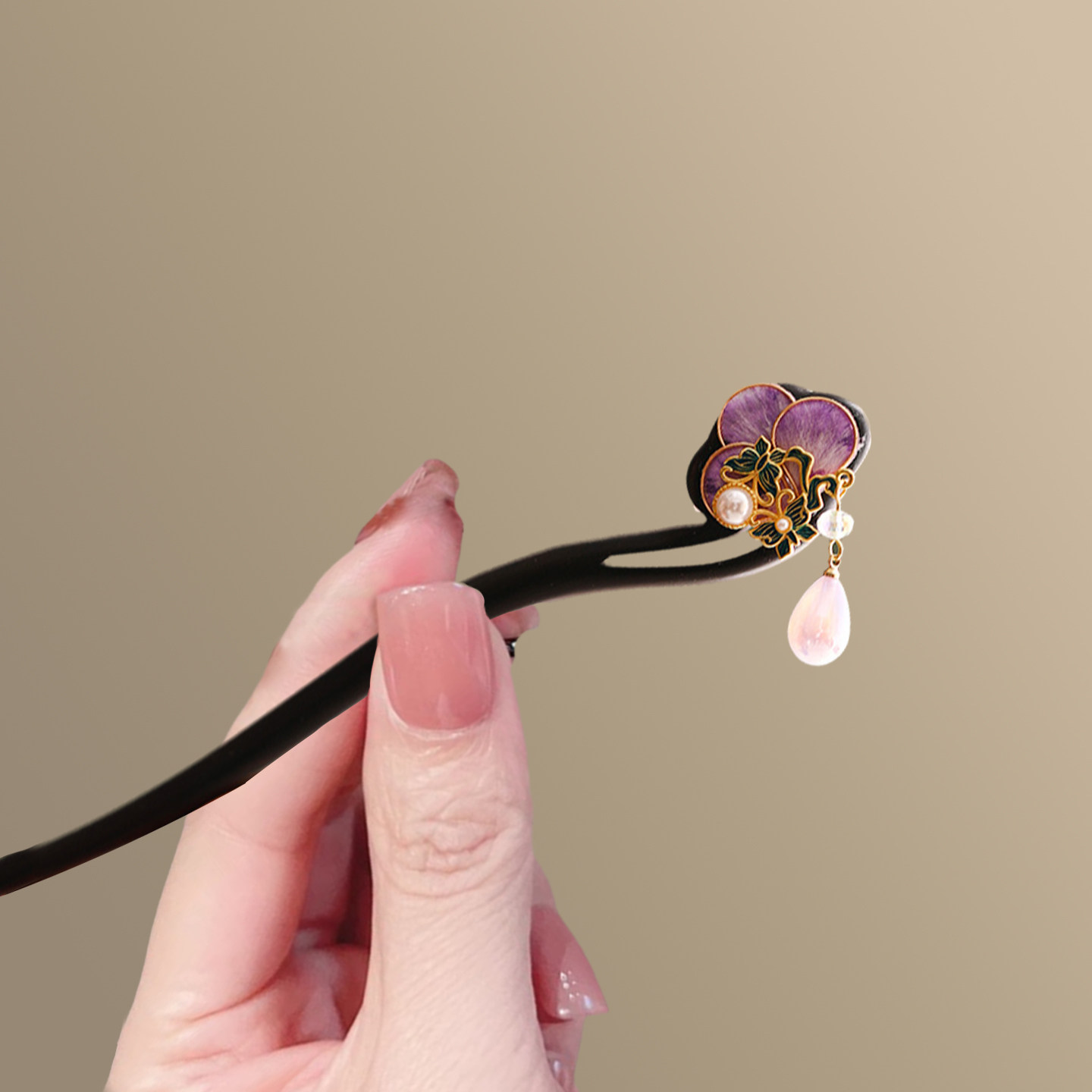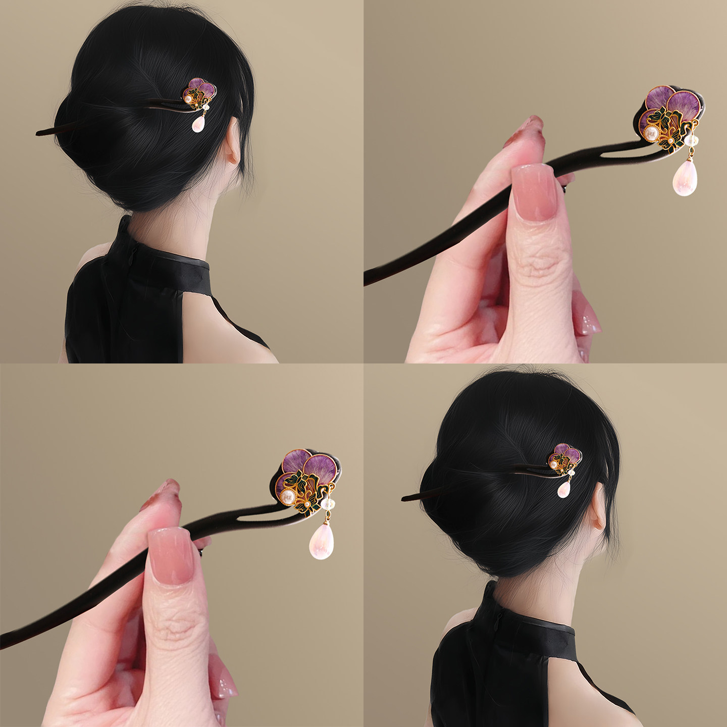 📚 折花鸢尾!新中式蚕丝绒花檀木发簪!新中式气质古风旗袍侧边盘发