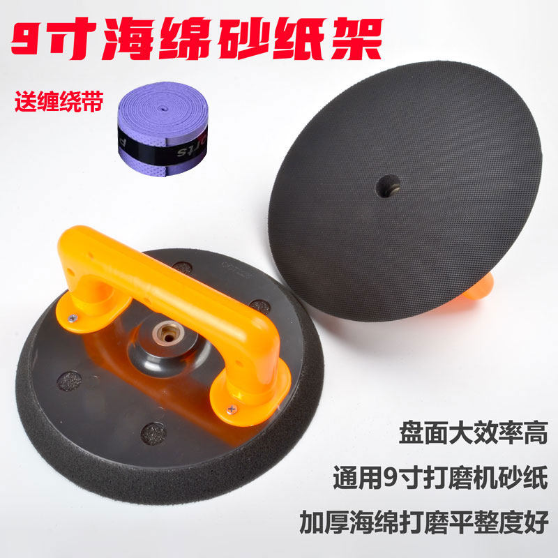 📚 9寸圆盘自粘砂纸架手持打磨机头海绵盘腻子墙面打磨植绒砂纸