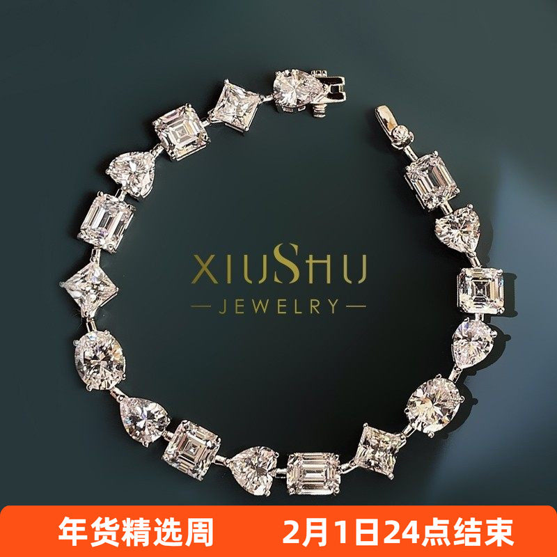 📚 925纯银仿真钻石水滴祖母绿手链阿斯切爱心异形高碳钻ins风SL512