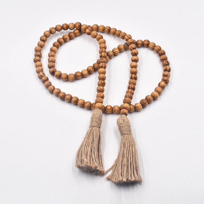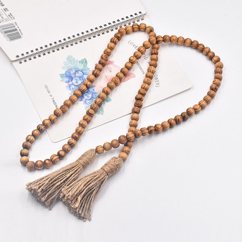 📚 波西米亚风 松木珠麻绳流苏串珠 家居墙壁挂件装饰 衣服配饰