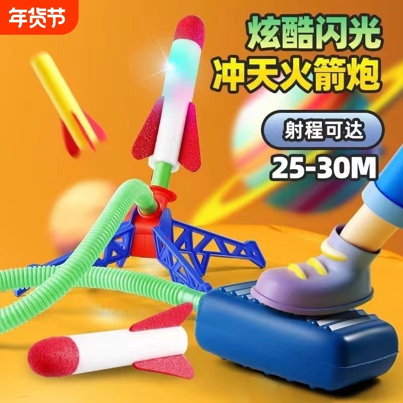 📚 儿童脚踩冲天火箭发射筒小玩具户外男孩脚踏式发射器飞天炮广场
