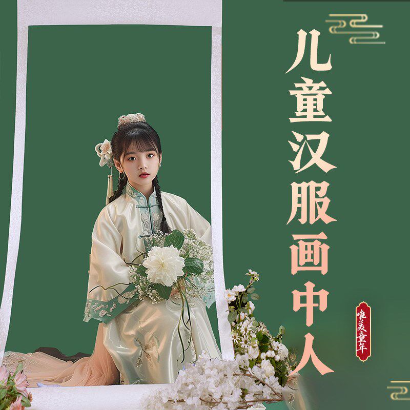 📚 儿童画中人汉服道具写真拍摄画中游置景道具轴画卷里仙气画轴