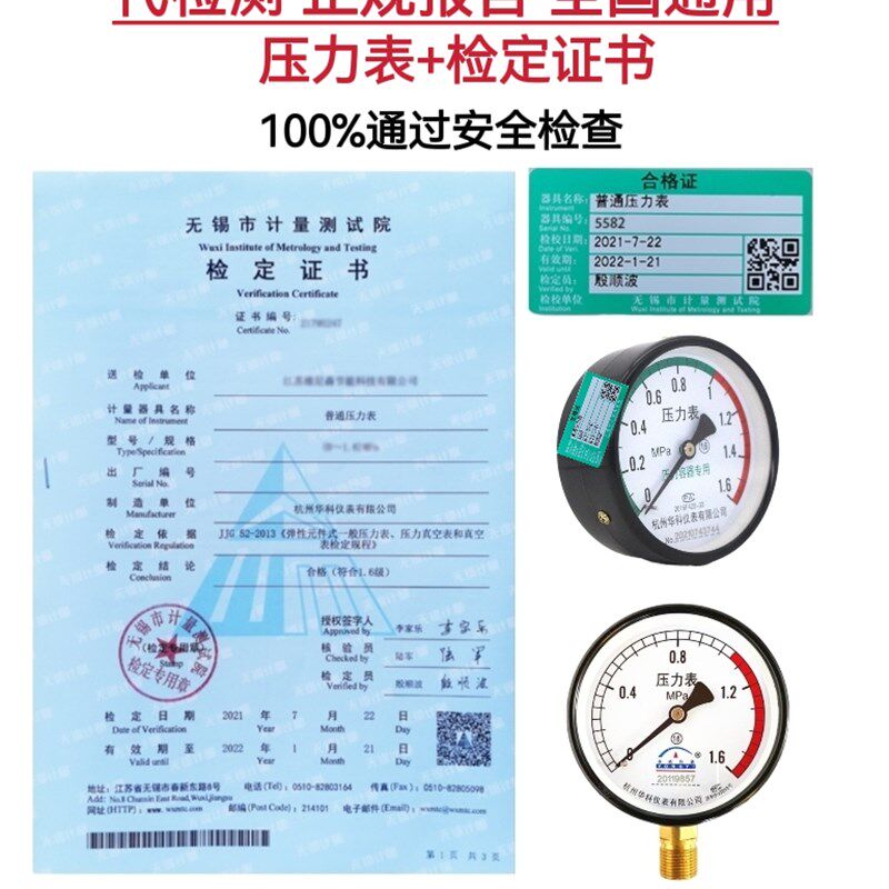 📚 精选压力表代检测空压机储气罐计量局检定报告Y100不锈钢耐震表代