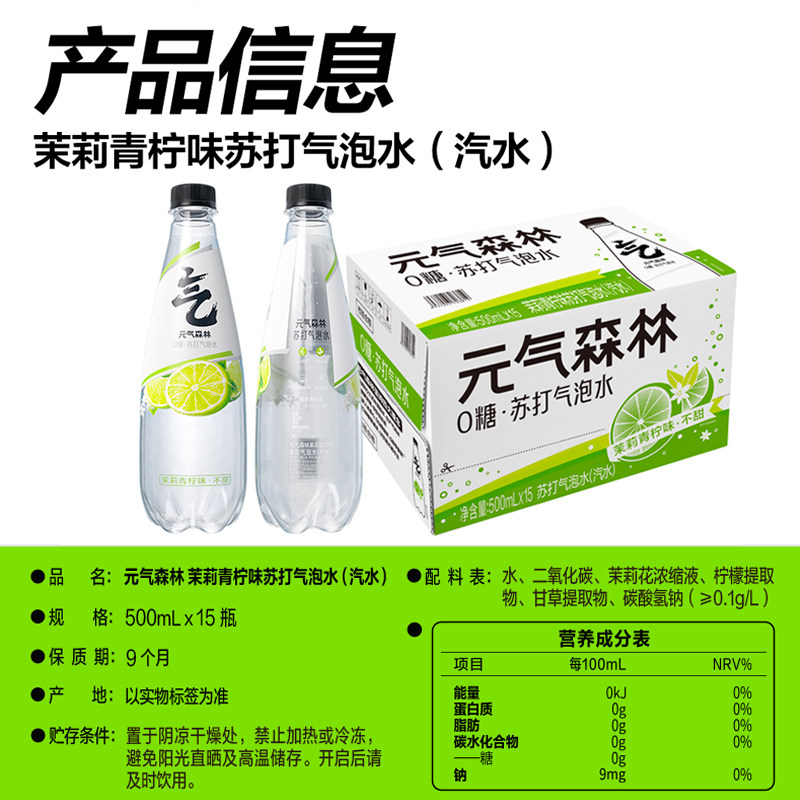 📚 元气森林茉莉青柠味苏打气泡水500ml*15瓶