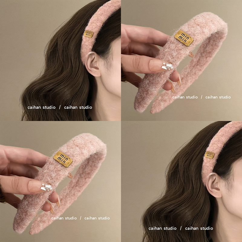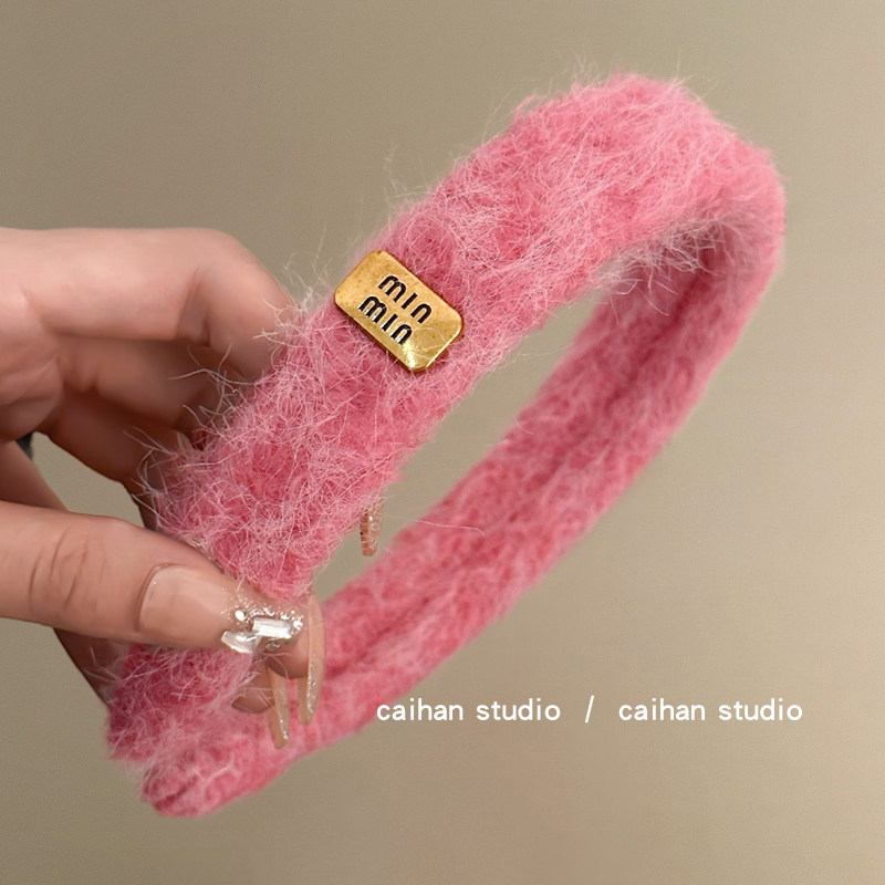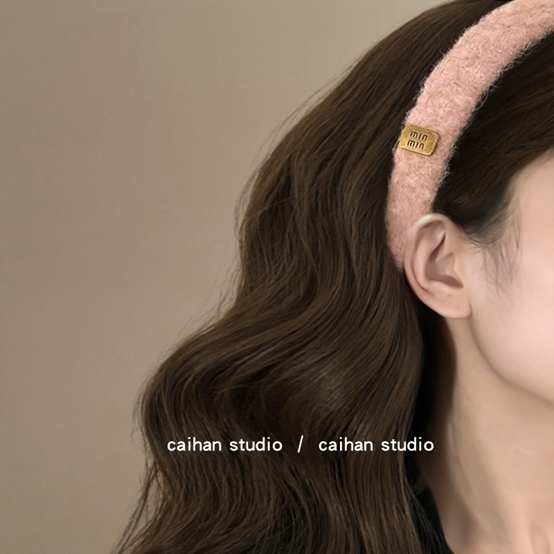 📚 初次心动~毛线字母金标发箍女复古增高颅顶发卡秋冬慵懒风盘发器