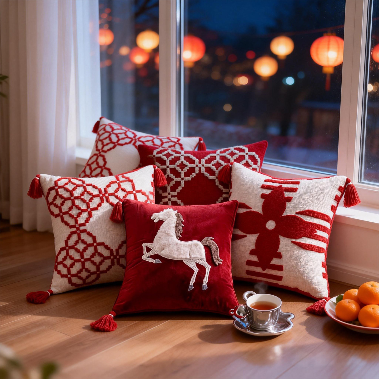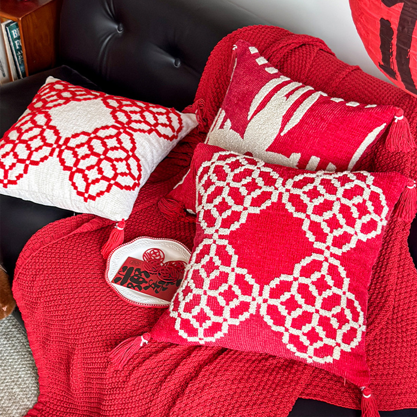 📚 红色新年马年喜庆抱枕客厅沙发靠枕轻奢高级感抱枕套结婚卧室装饰