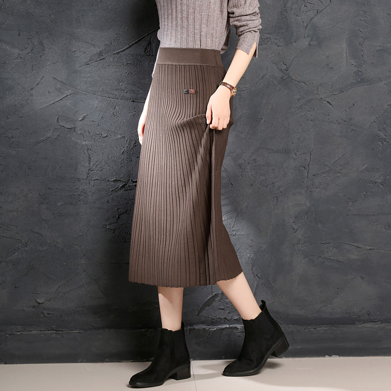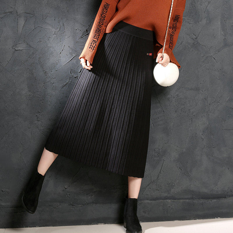 📚 女款a字裙百褶裙松紧腰针织半身裙秋冬天裙子女冬裙长裙半身群子
