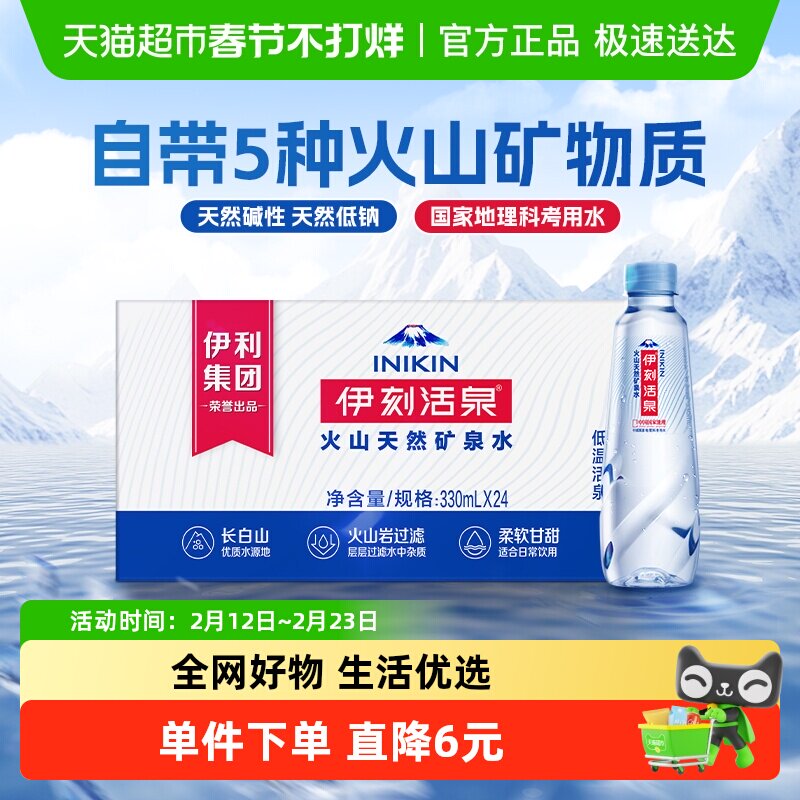 📚 伊利伊刻活泉火山低温活泉矿泉水330ml*24瓶整箱阿尔山水源饮用水