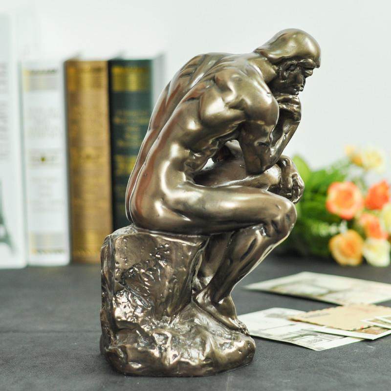 📚 复古古铜色人物沉思者摆件创意家居橱窗雕塑艺术品工艺品思考者