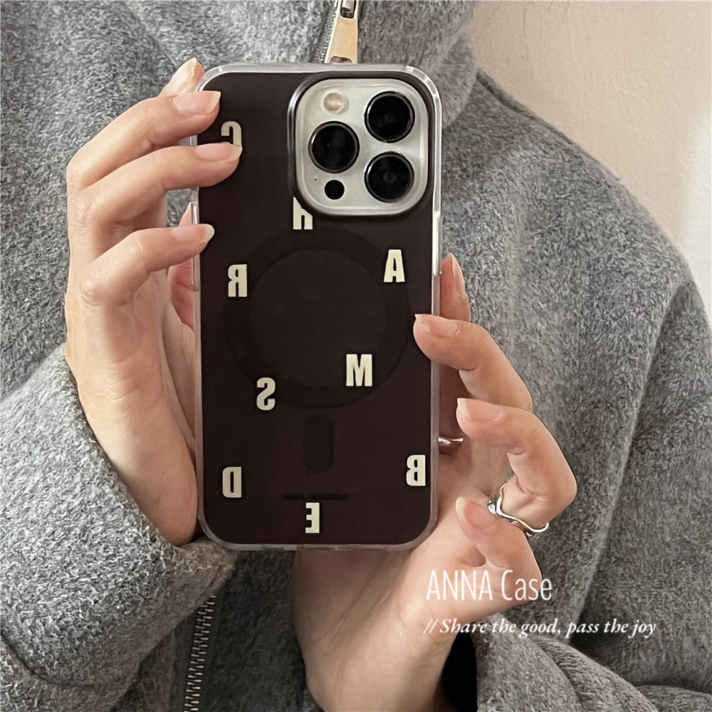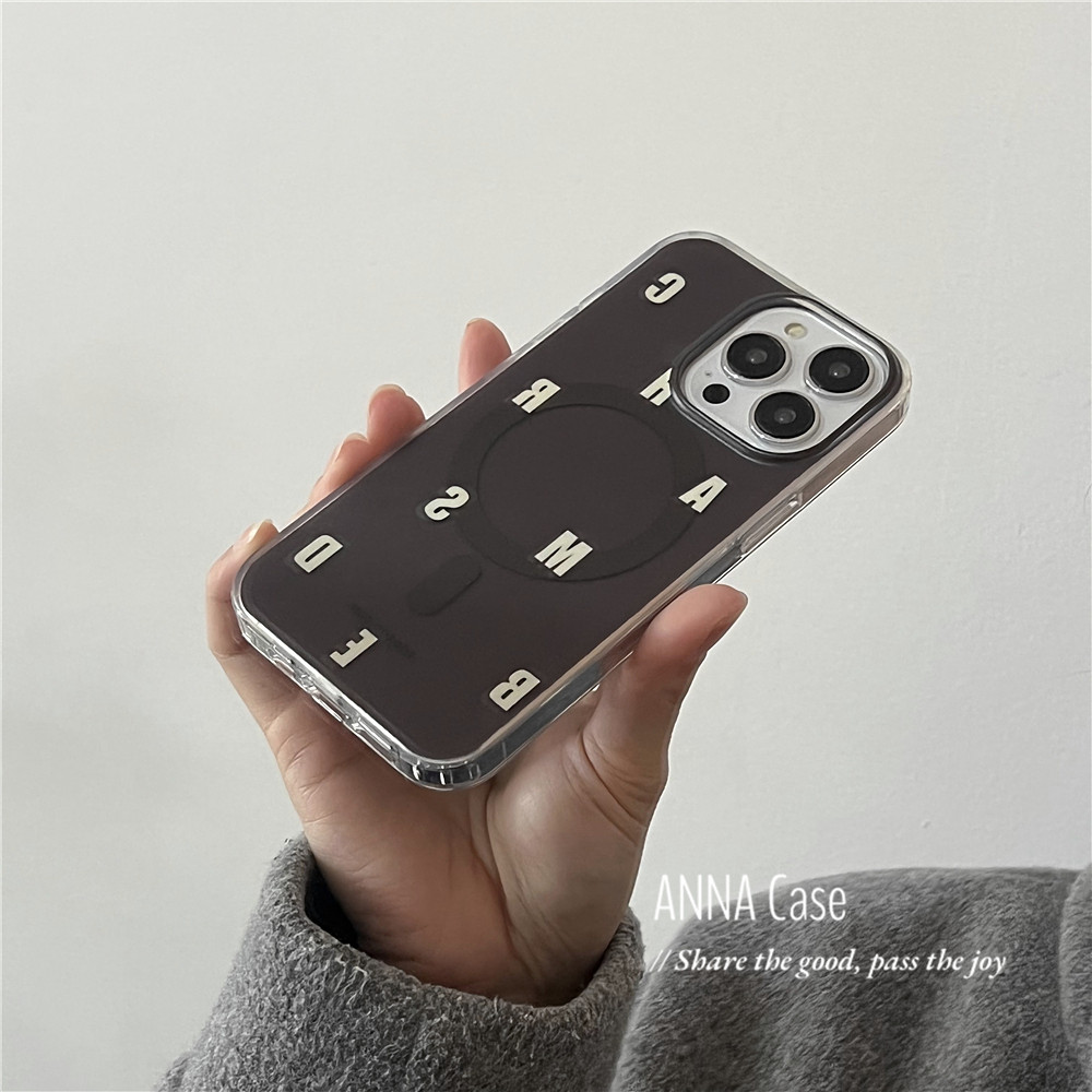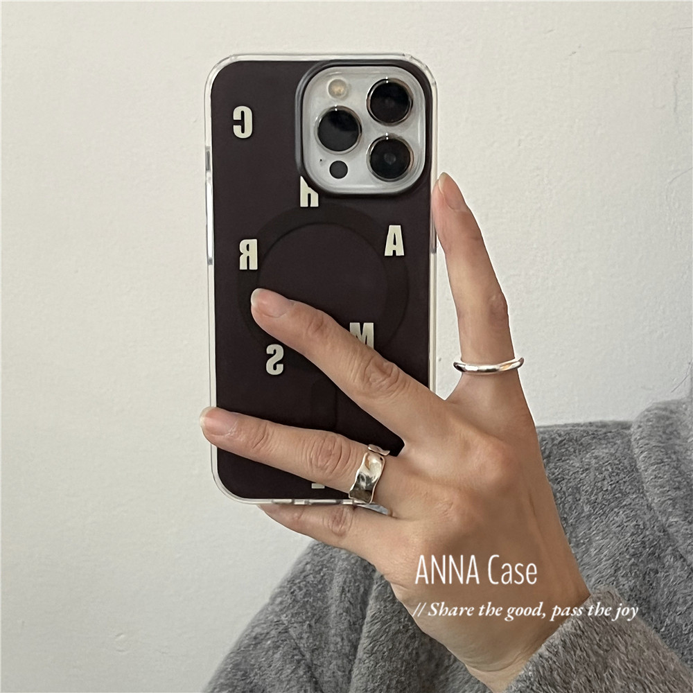 📚 ANNACASE韩国ins小众简约深咖色字母适用iPhone15苹果14pro磁吸手机壳16promax磨砂亚克力12全包13防摔保护套