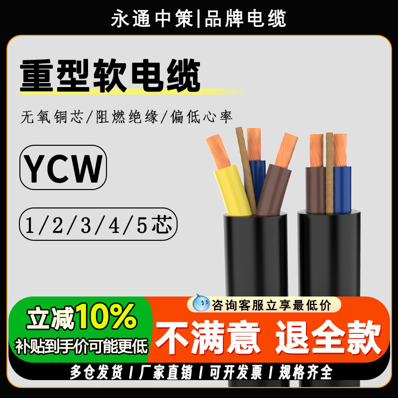 📚 永通中策国标YCW橡胶电缆线2/3/4/5芯1/16/240平方纯铜重型软电线