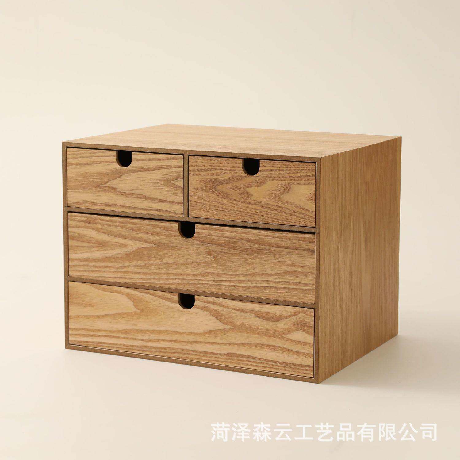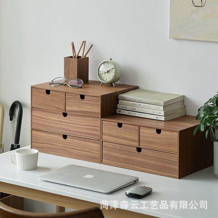 📚 现货木质桌面收纳盒多层抽屉式文具杂物整理柜办公桌面储物盒