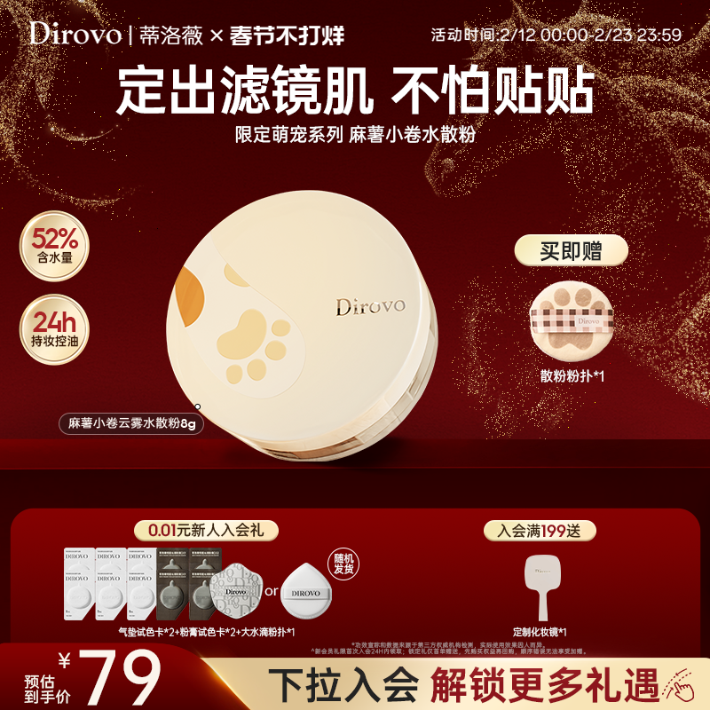 📚 蒂洛薇dirovo麻薯小卷水散粉控油定妆蜜粉粉饼持妆24h防水