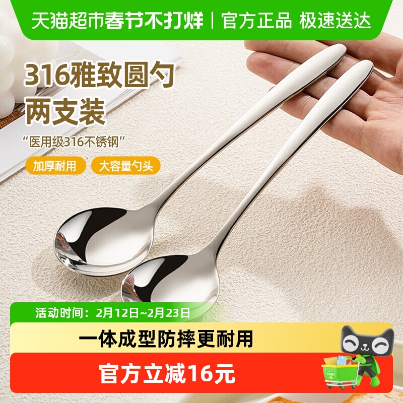 📚 广意316不锈钢勺子家用圆勺喝汤勺长柄勺吃饭调羹汤匙2支装