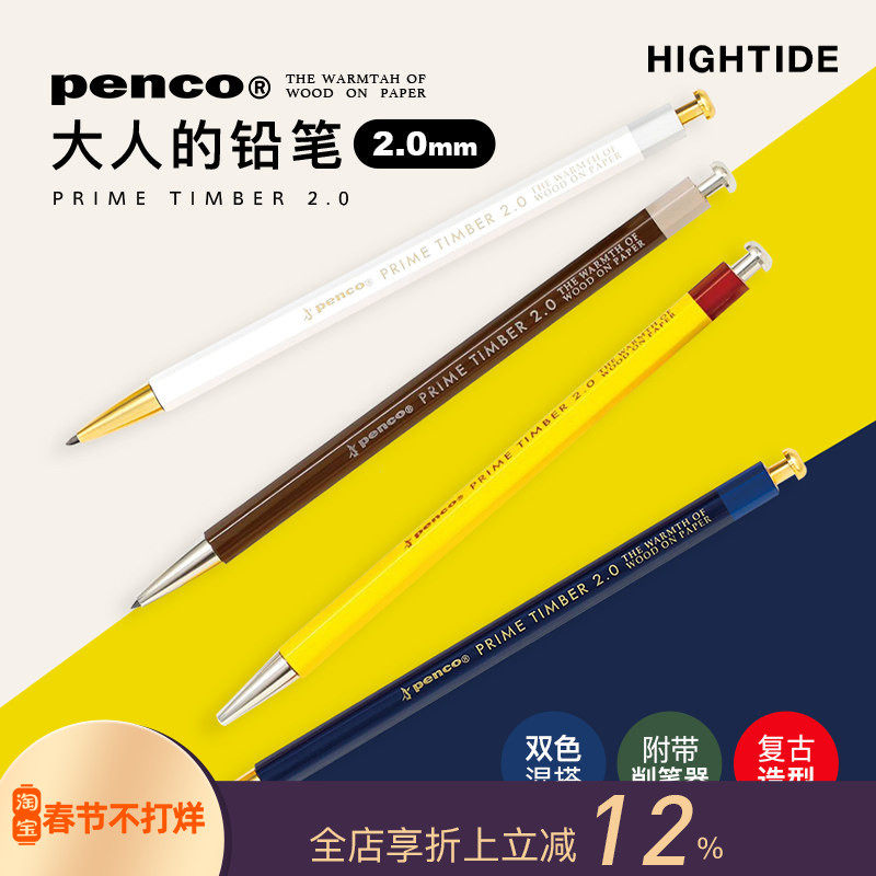 📚 HIGHTIDE Penco2.0mm自动铅笔木质笔杆金属材质绘图绘画书写