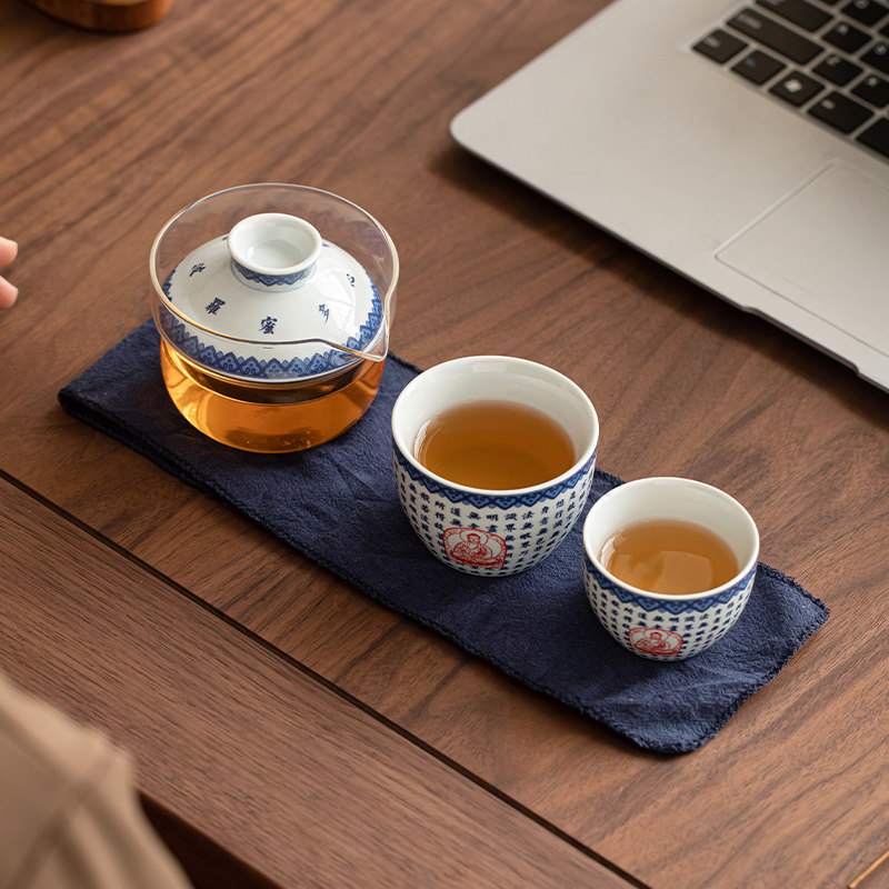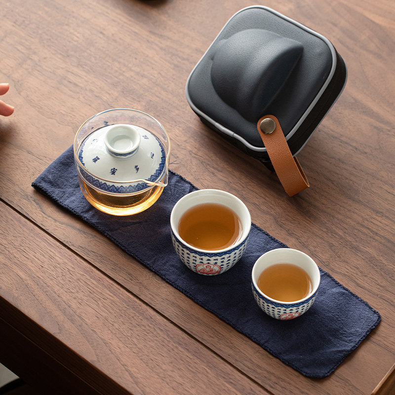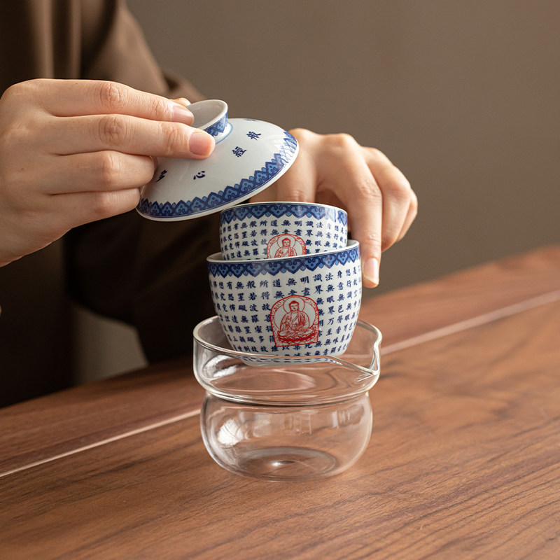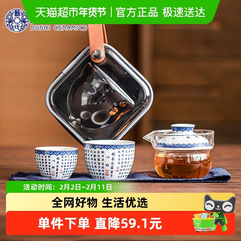 📚 苏氏陶瓷(SUSHI CERAMICS)国潮青花心经旅行包便捷茶具 快客组