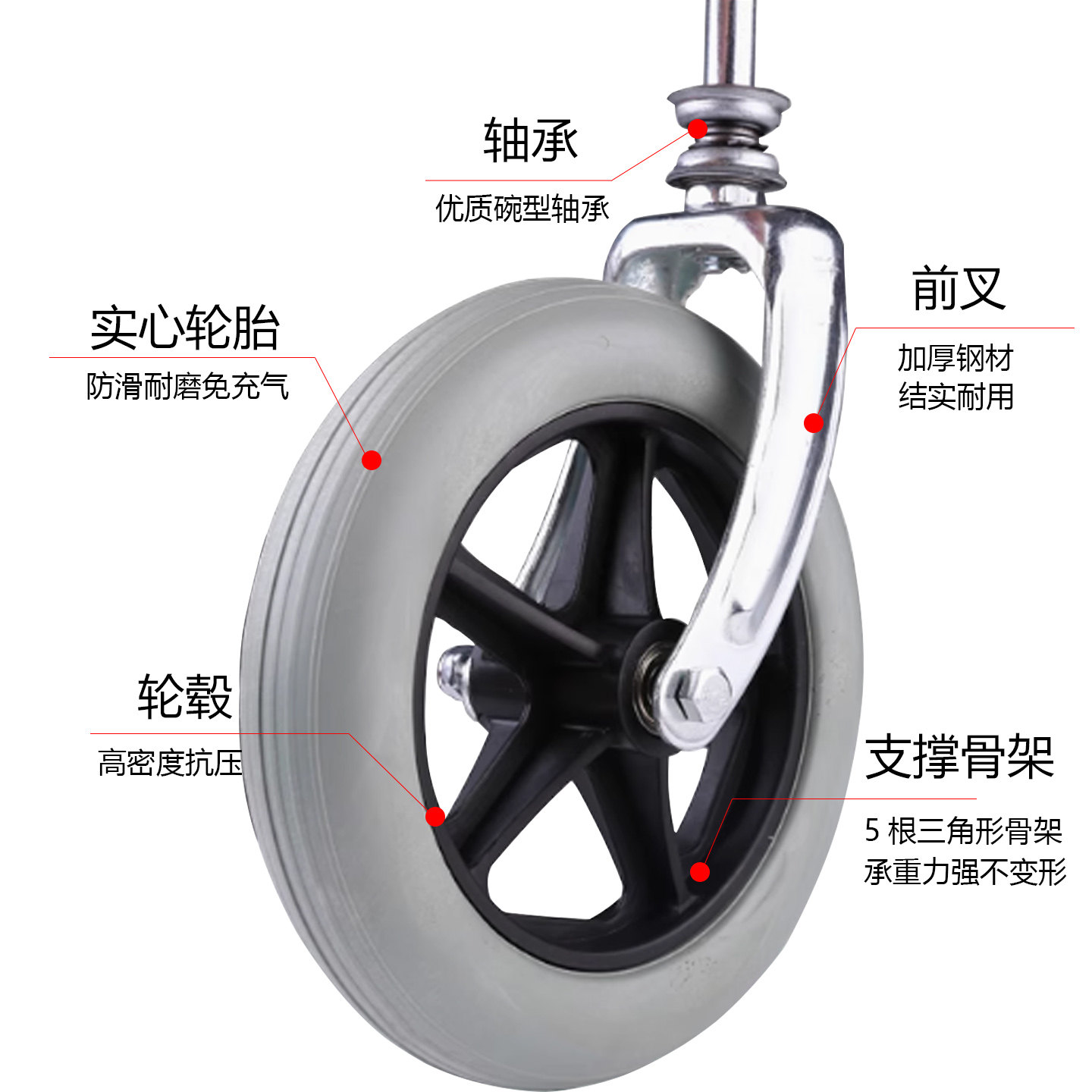 📚 轮椅配件前轮前叉轴承万向轮前小轮子6寸7寸8寸轮椅车配件总成叉