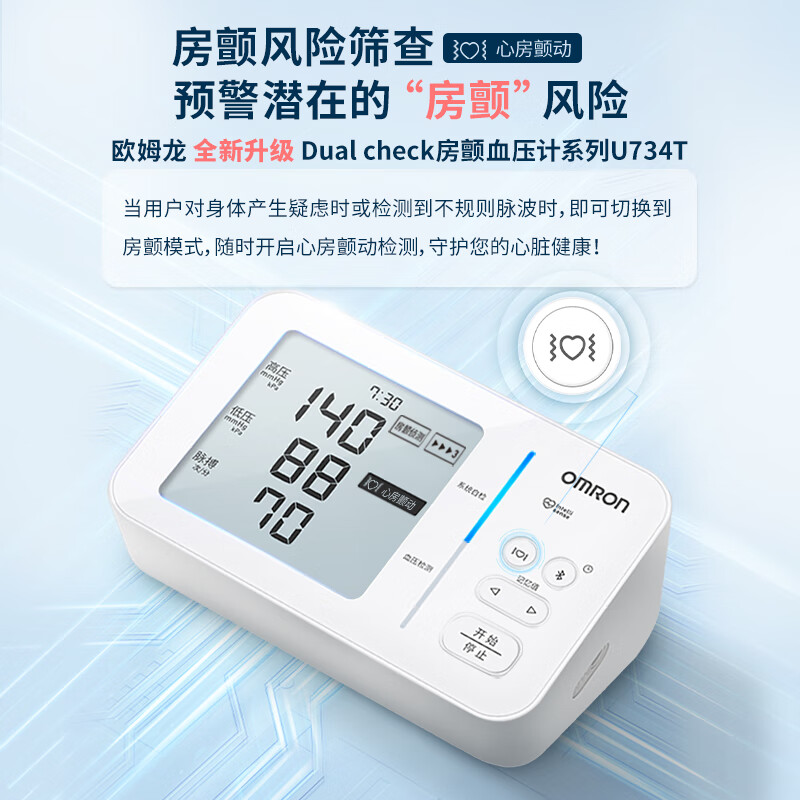 📚 欧姆龙房颤血压计家用U734T电子血压测量高精准医用臂式测压仪器