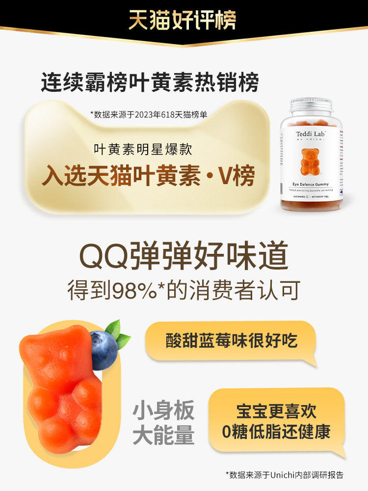 📚 Unichi护眼小熊软糖蓝莓叶黄素软糖儿童成人叶黄素正品官方旗舰店