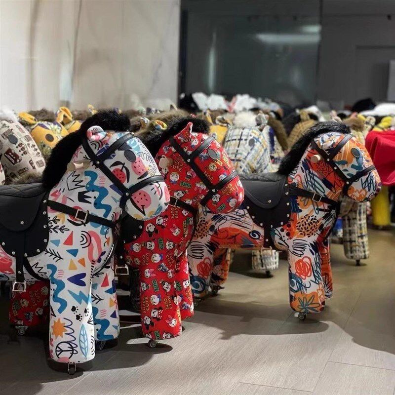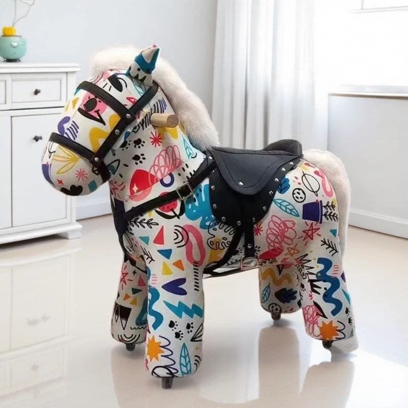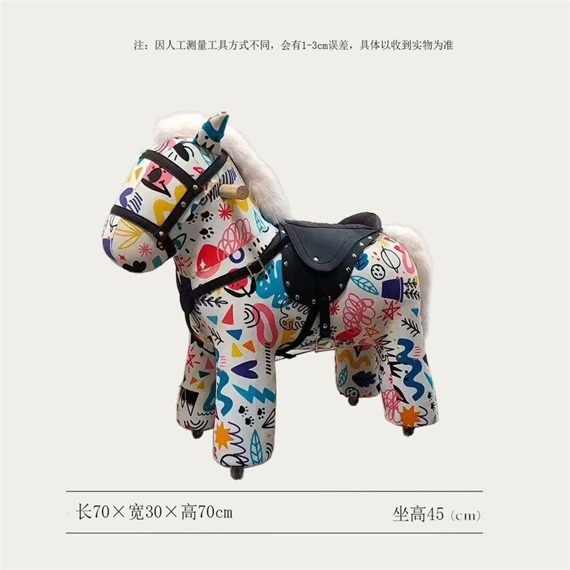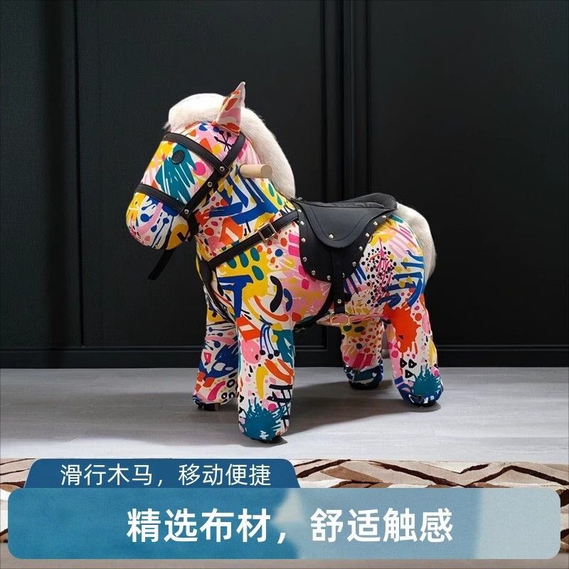 📚 法式儿童滑行木马网红小马凳摇摇椅可移动小马驹带轮落地摆件礼物