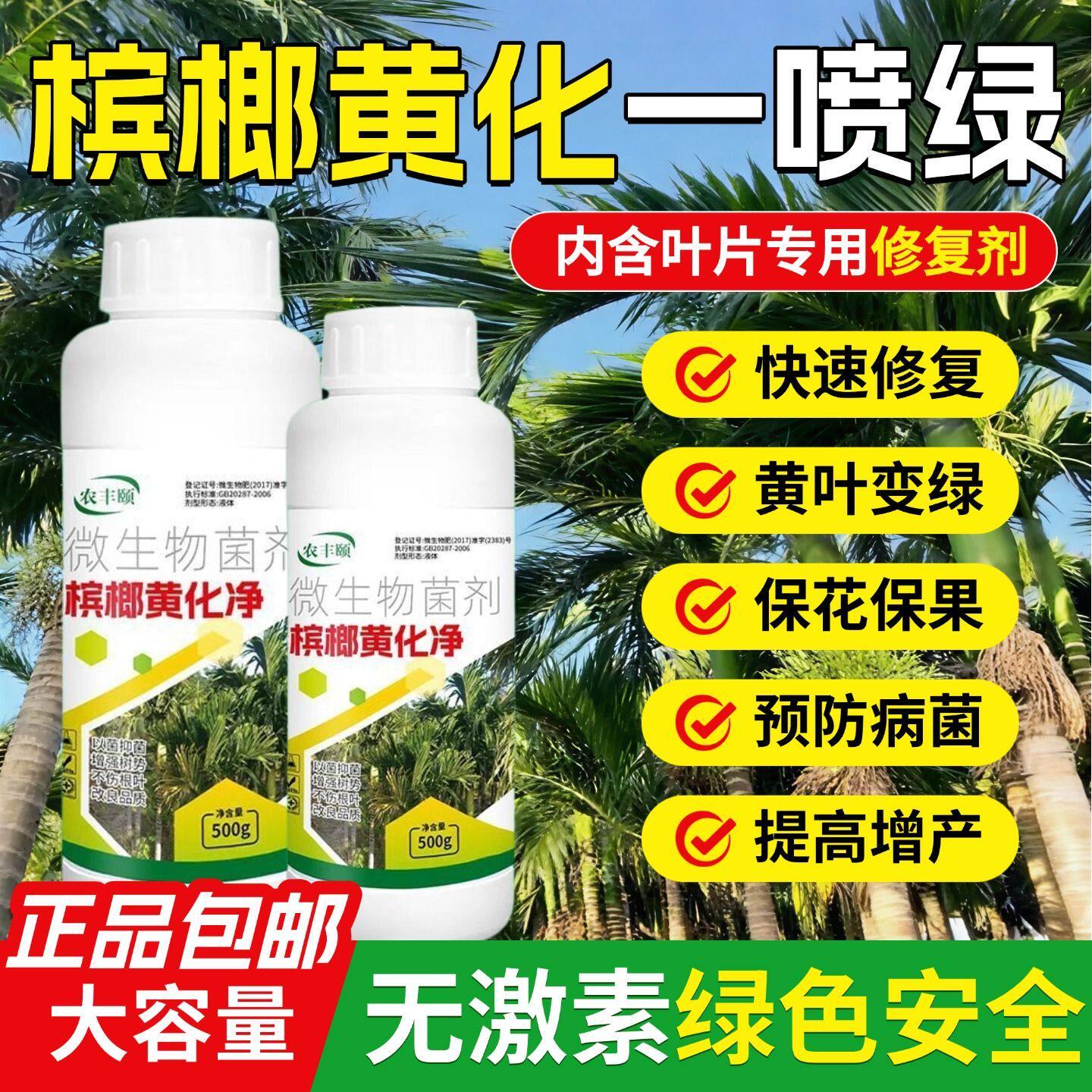 📚 槟榔黄化病专用净微生物菌剂黄叶黄斑黄龙病农用抗病毒杀菌促生长
