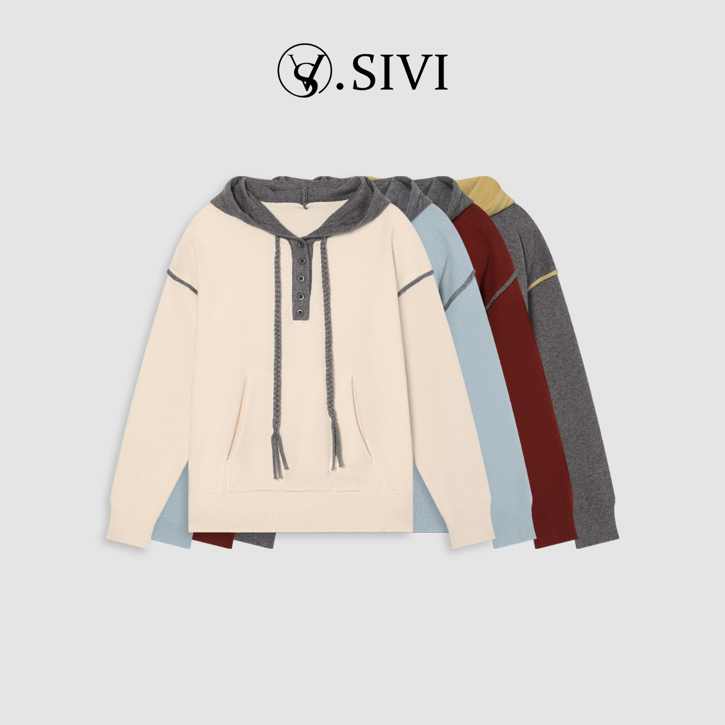 📚 熙薇【灰调序曲】2025秋季新款时尚休闲百搭连帽毛衣上衣H5762