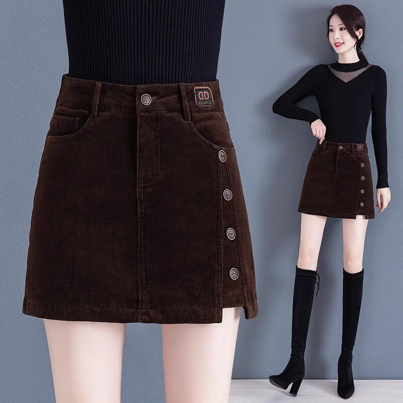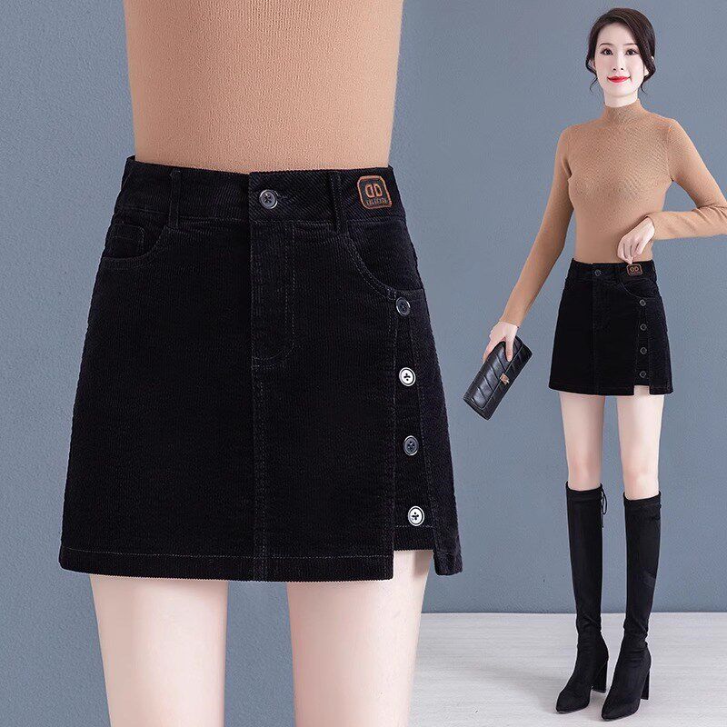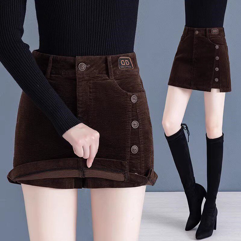📚 灯芯绒短裤女士2025年秋冬季新款高腰平绒a字裤裙休闲外穿靴裤子