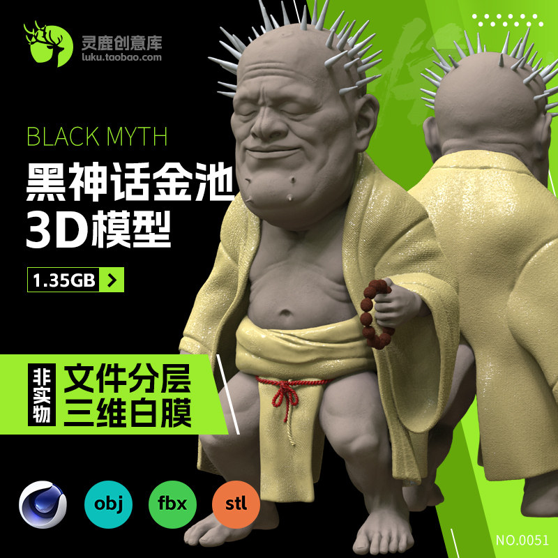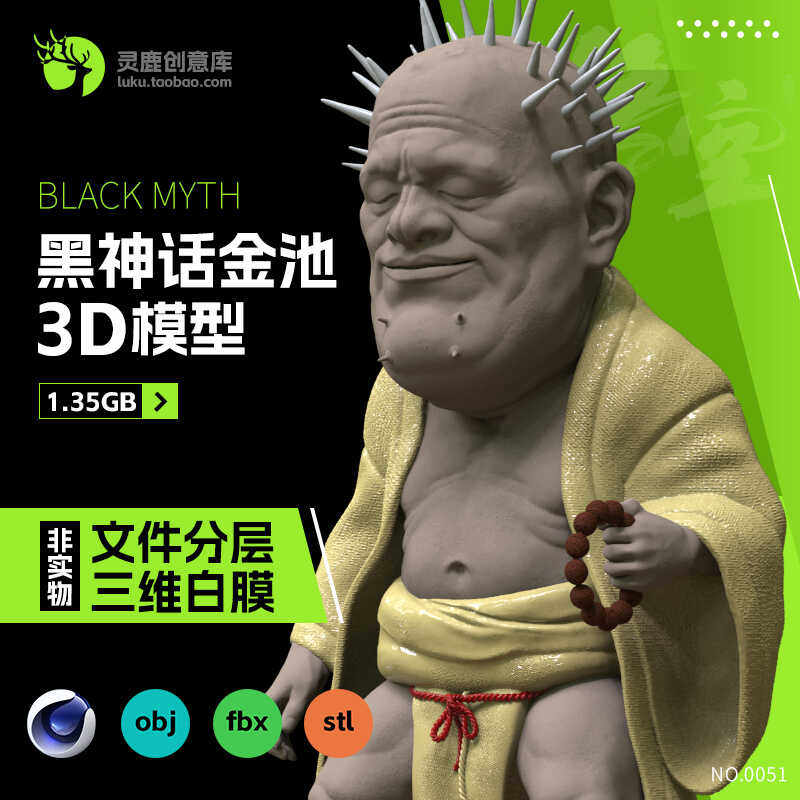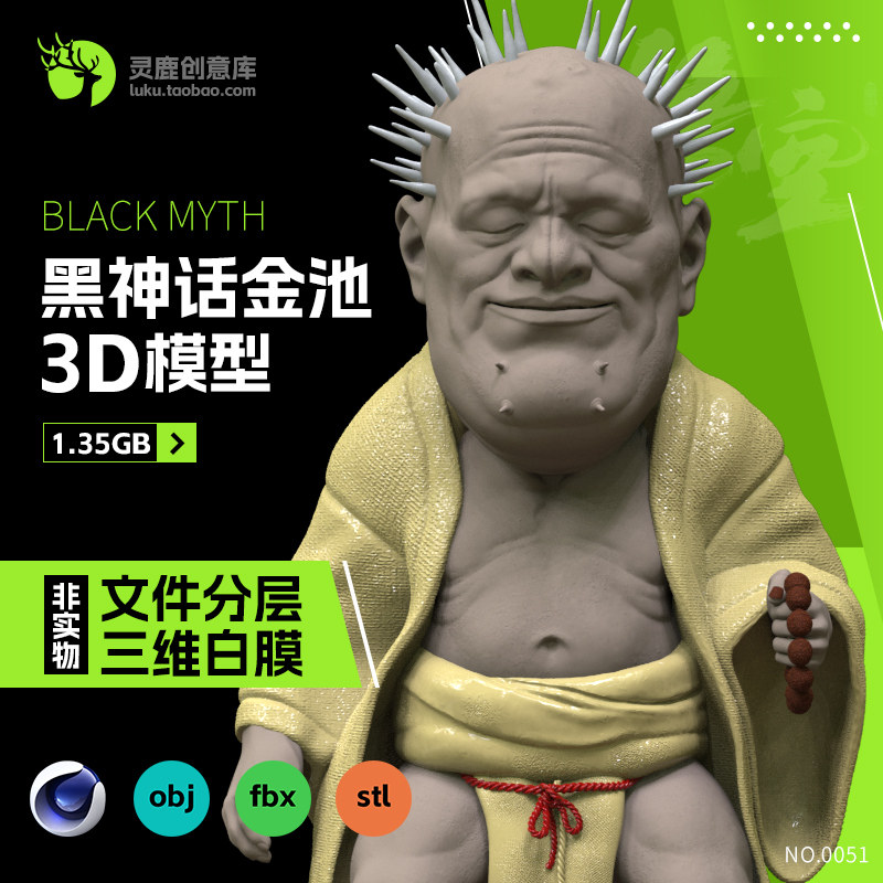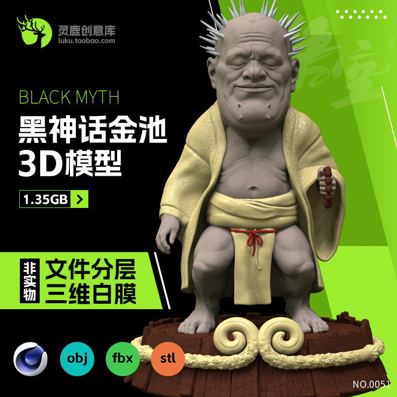 📚 西游记金池长老黑神话悟空分层3d模型c4d fbx素材obj格式stl打印