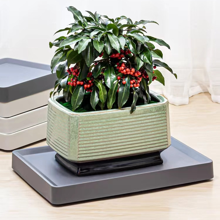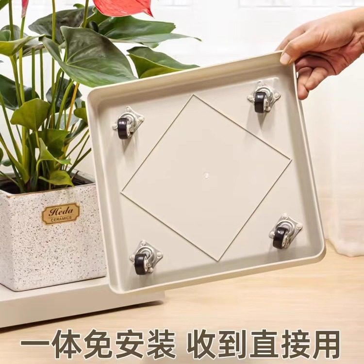 📚 长方形移动花盘底座隐形带轮大号接水盘加厚塑料万向轮花盆托盘
