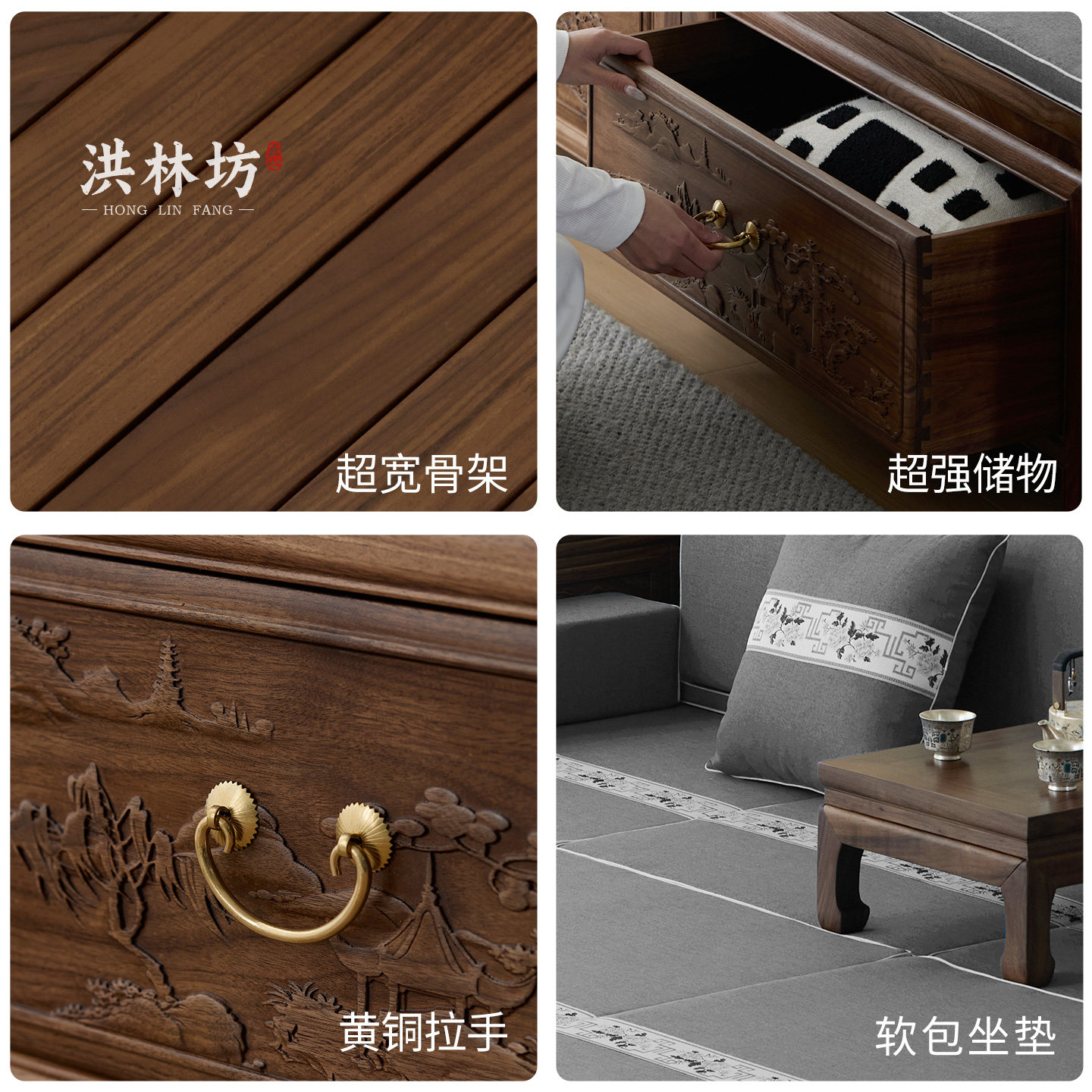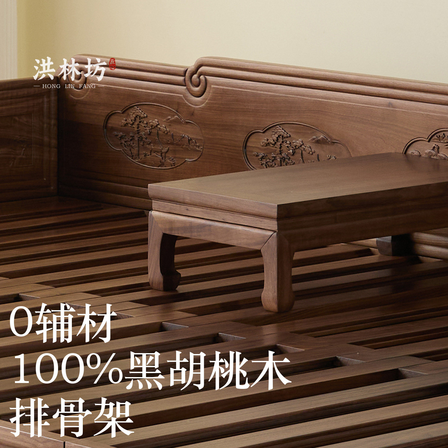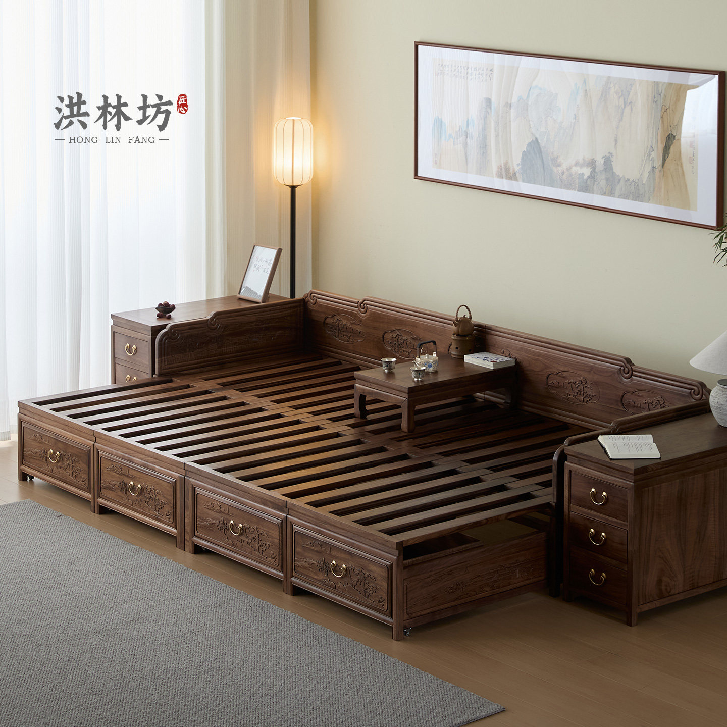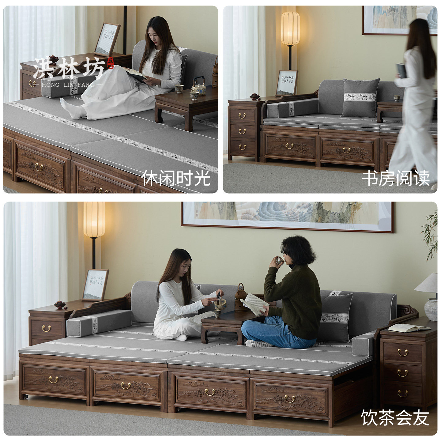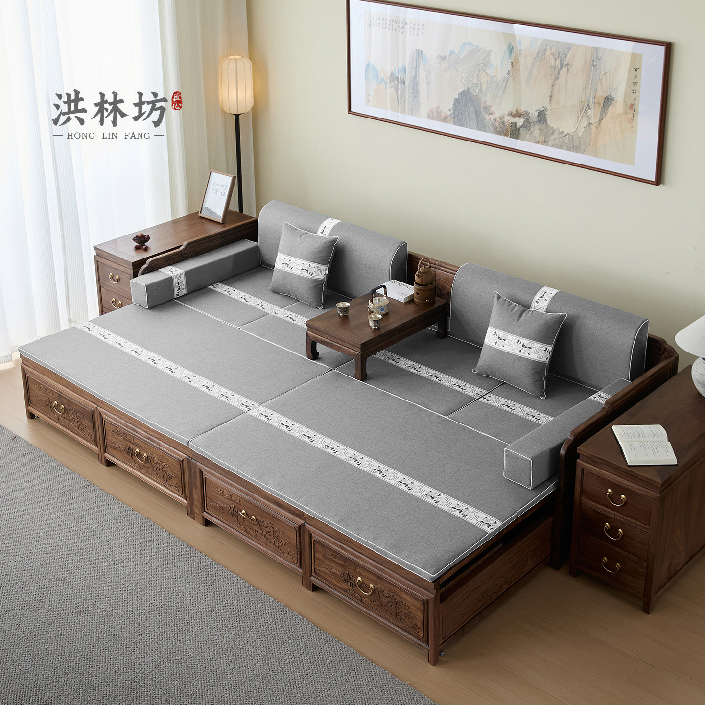 📚 洪林坊宋式美学中式实木罗汉床推拉床禅意老榆木客厅沙发老式家具