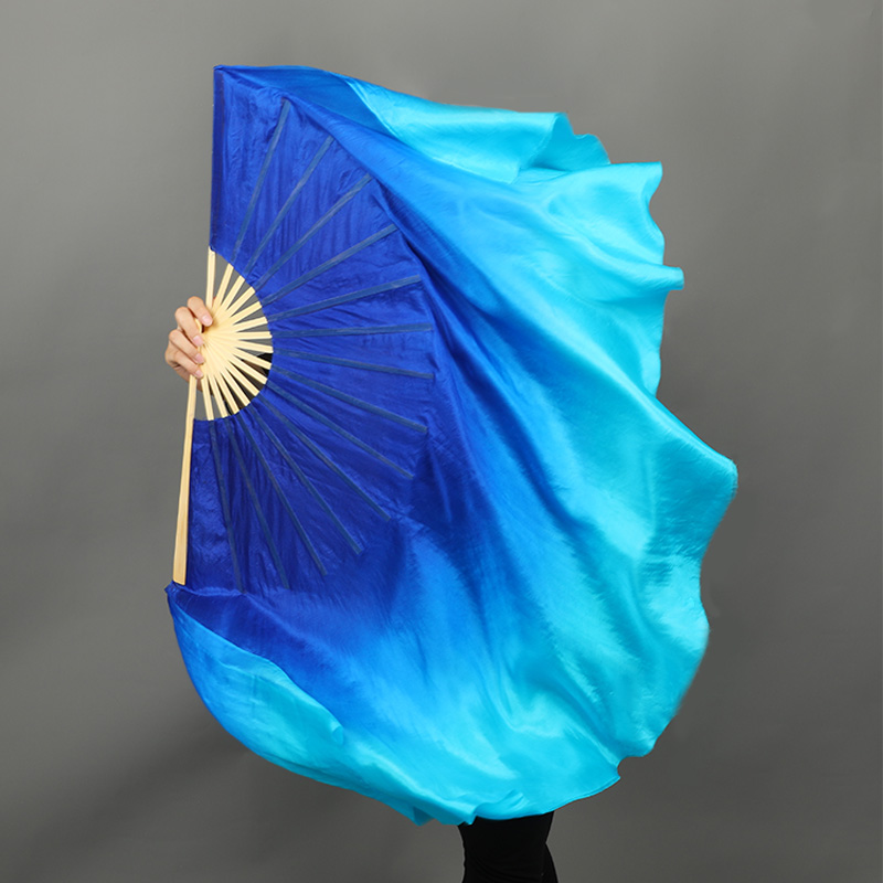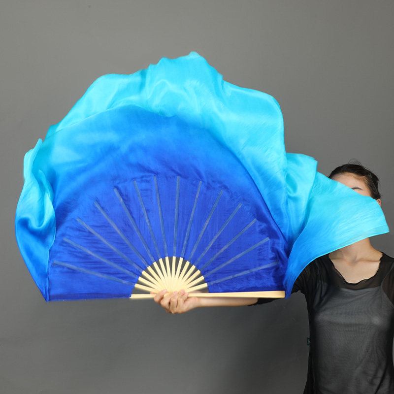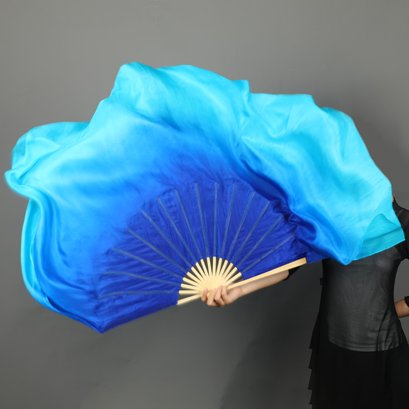 📚 一条大河真丝双面舞蹈扇宝蓝渐变渐变大秧歌扇古典舞中国风跳舞扇