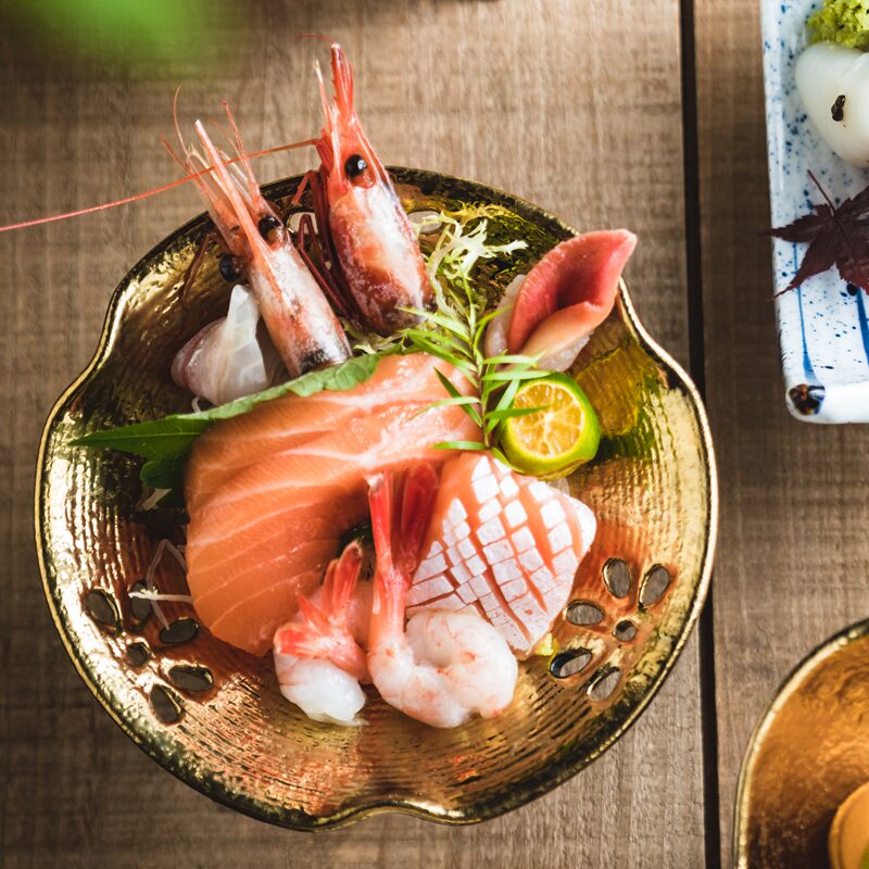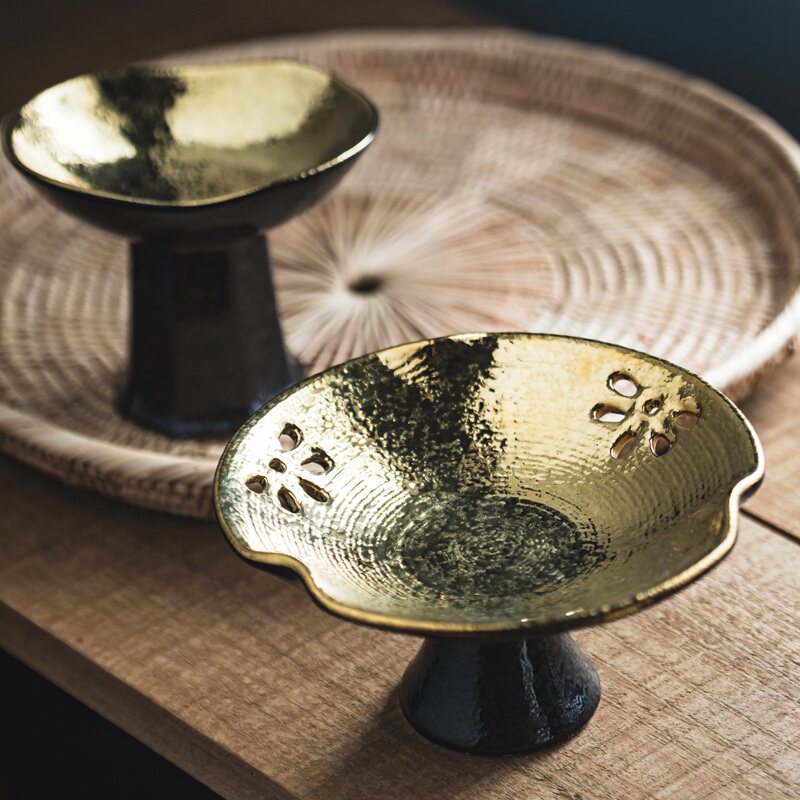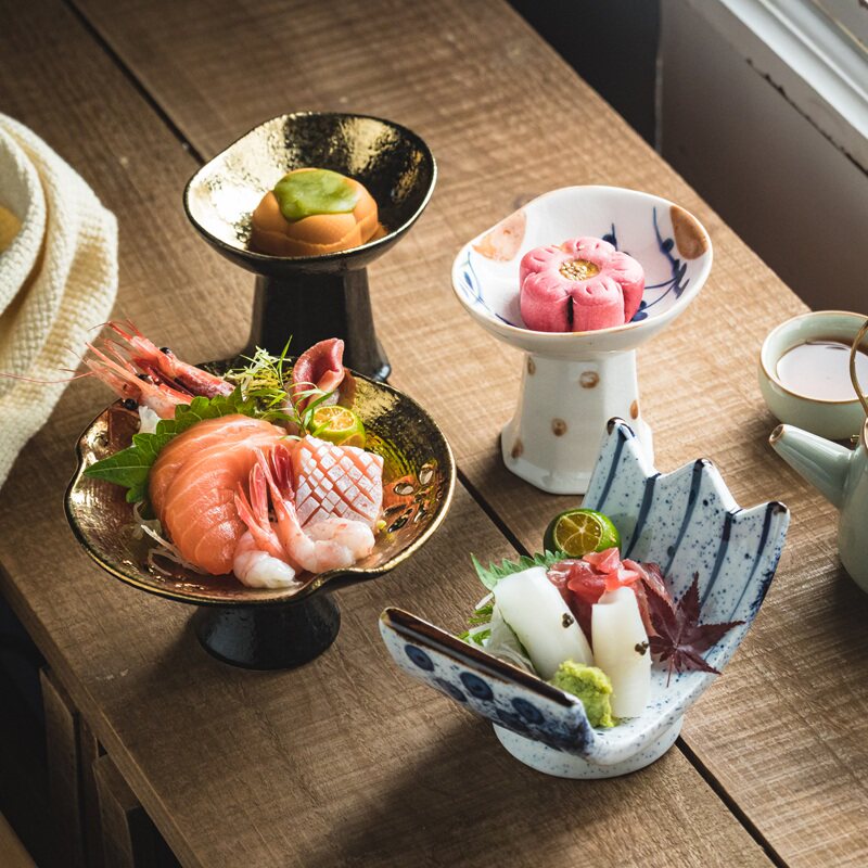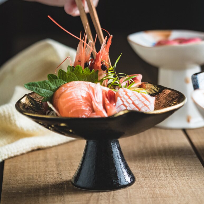 📚 高脚盘陶瓷高端刺身专用盘日式盘子意境菜餐具碟子糕点摆盘金色盘