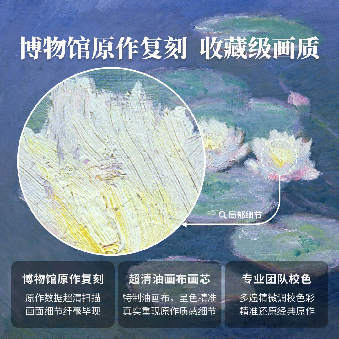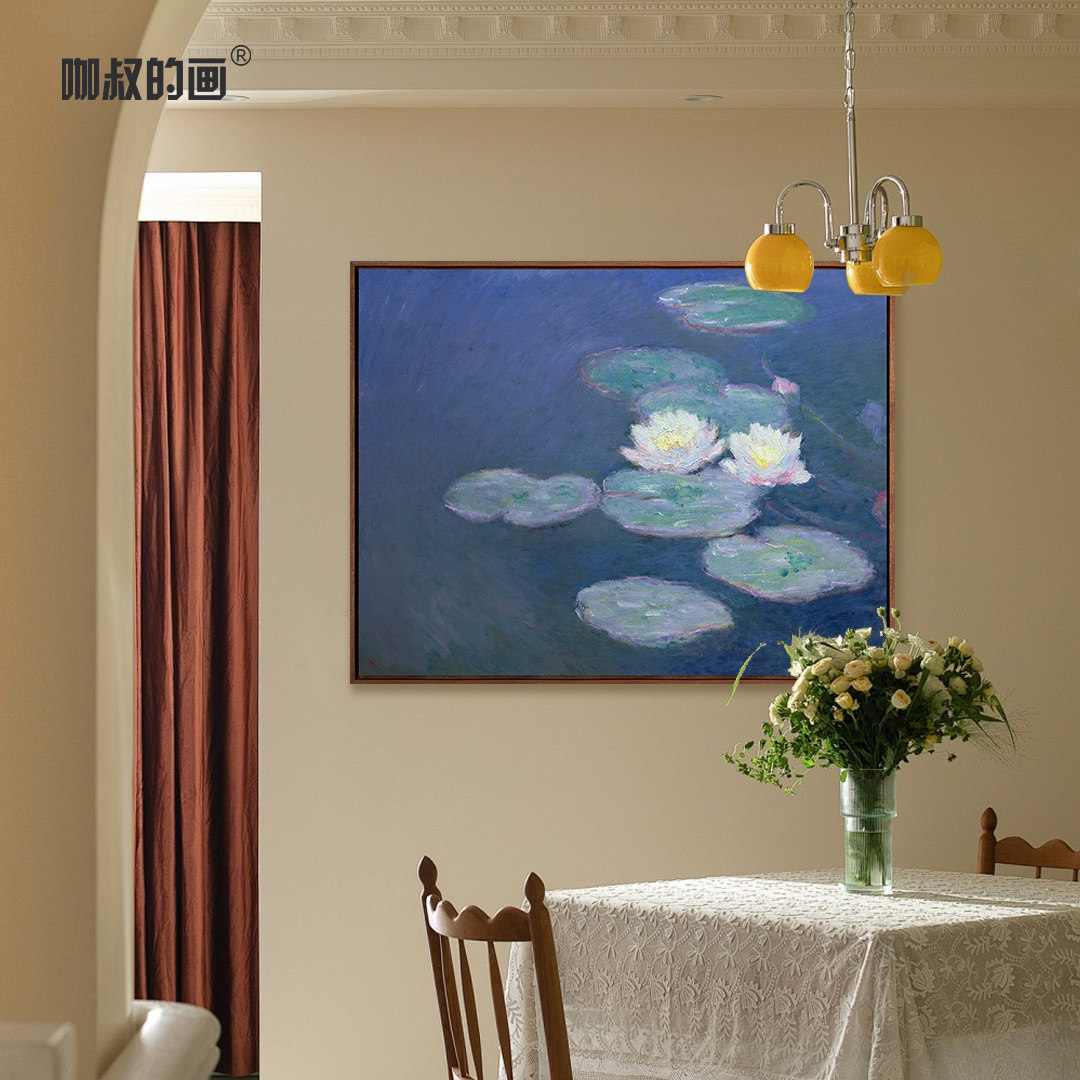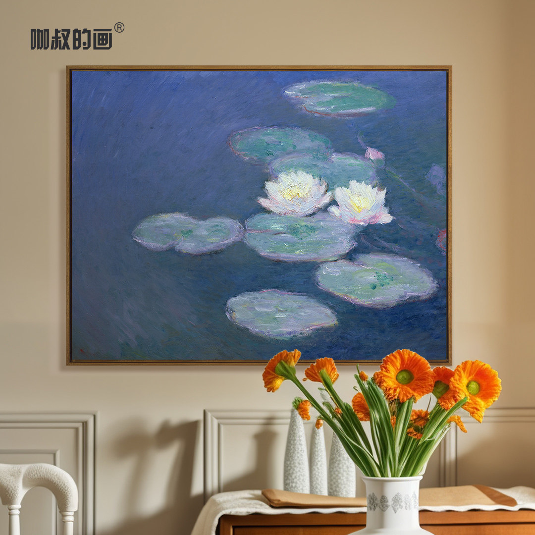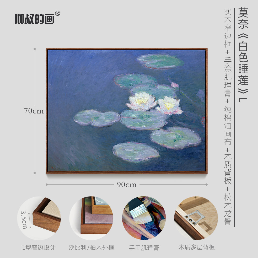 📚 莫奈-白色睡莲版画客厅装饰画玄关挂画餐厅卧室书房壁画数字油画