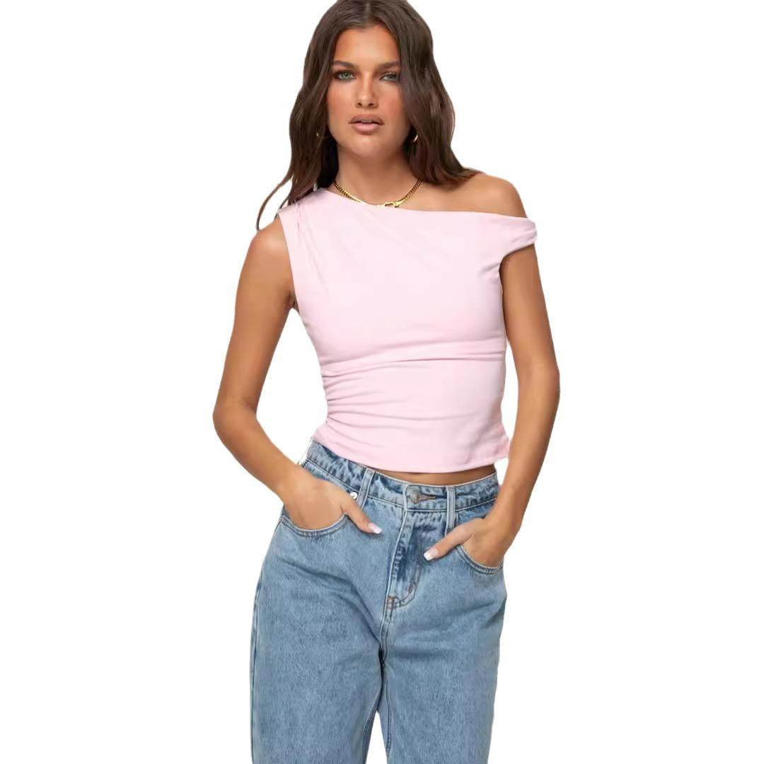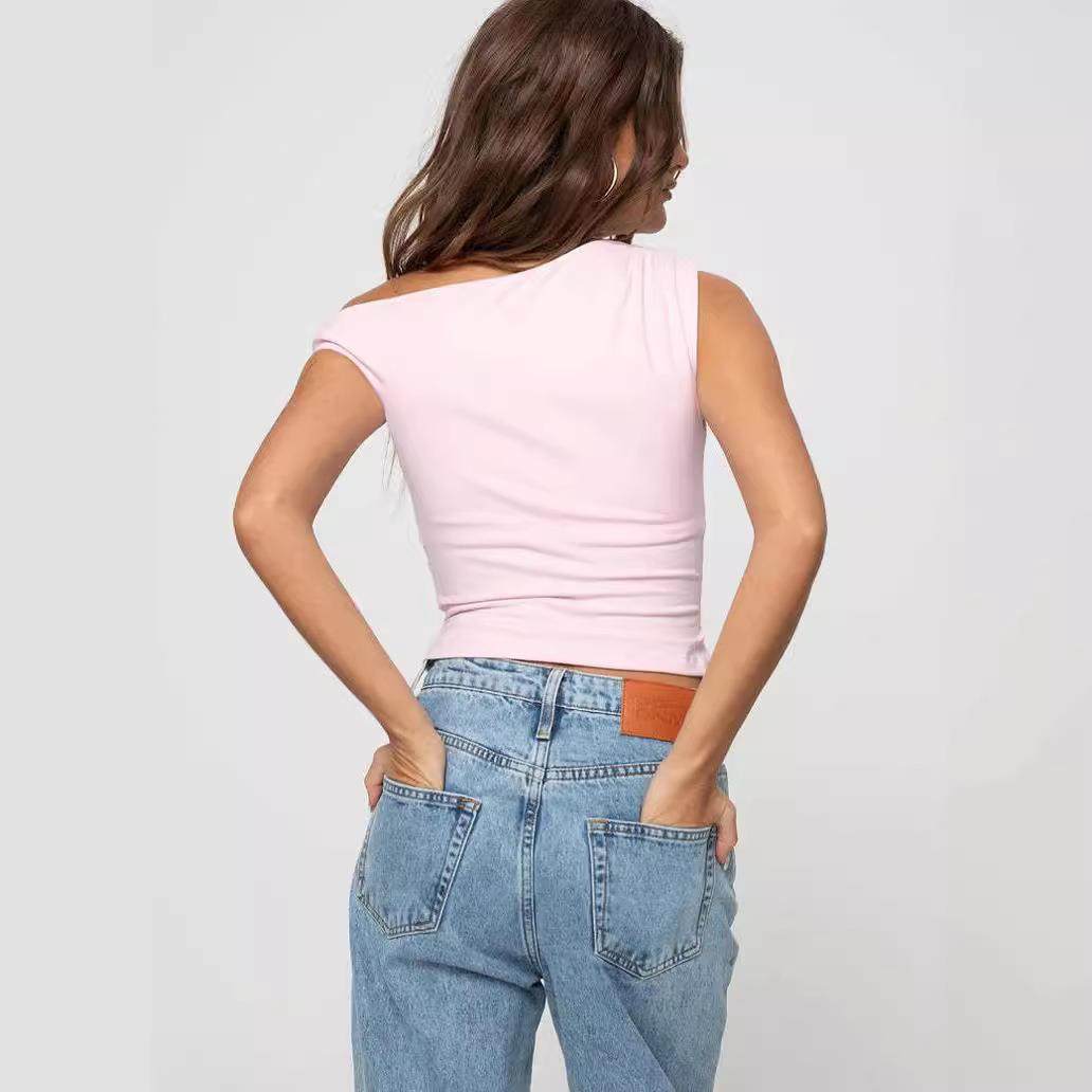 📚 sexy skew collar shirt women casual summer neck shirts slim
