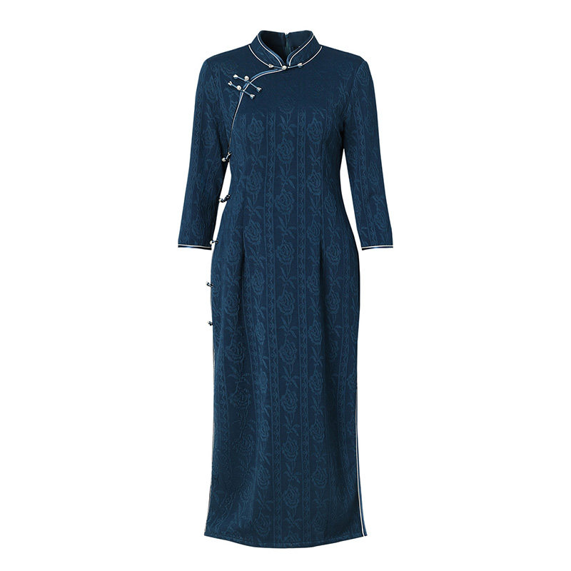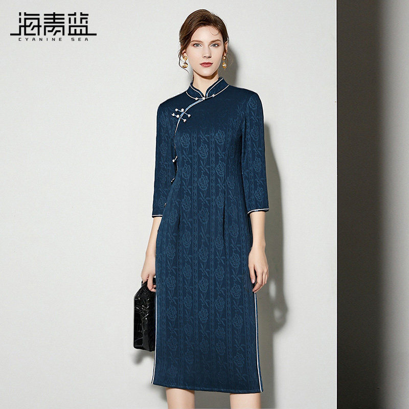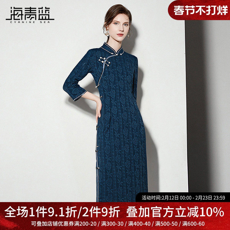 📚 海青蓝 连衣裙秋女2025新款中长款时尚温柔女装盘口中式旗袍裙子