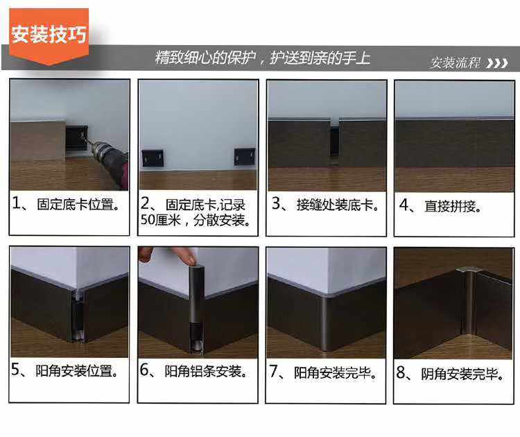 📚 铝合金踢脚线专用配件12CM不锈钢地角板4/5/6cm8公分黑色加厚10CM