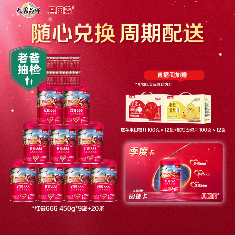 📚 【囤奶卡4500g】贝因美红爱666儿童4段奶粉含HMO母乳低聚糖